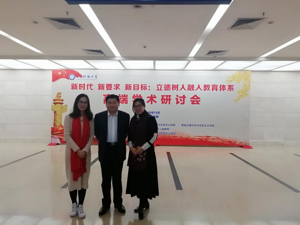 2018年11月17日至18日,黑料不打烊 基础教研室郑旭敏、孙秀丽参加在成都电子科技大学举办的“立德树人融入教育体系”高端学术论坛。来自清华大学、北京师范大学、中山大学等72所高校的专家学者和部分高校的师生齐聚电子科技大学,展开了一场精彩纷呈的思想盛宴。