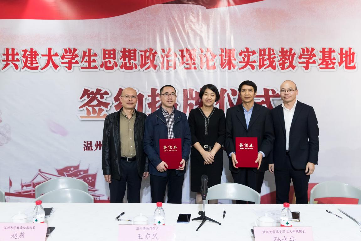 10月24日下午,我校与温州博物馆、温州道德馆共建大学生思想政治理论课实践教学基地签约揭牌仪式在市博物馆和道德馆分别举行。校教务处副处长赵燕、黑料不打烊 院长孙武安、副院长卓高生,温州博物馆馆长王亦武、副馆长高启新,温州道德馆运营单位温州市青少年活动中心主任叶立东、副主任胡也芬等出席揭牌意识。