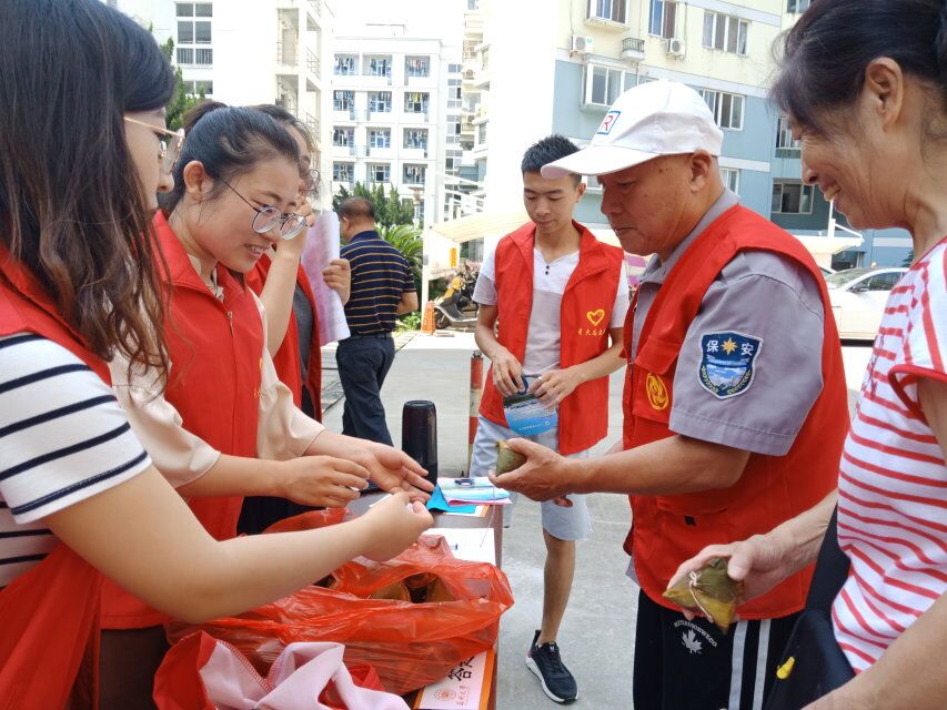 为传承和弘扬中国传统文化,6月12日,黑料不打烊 研究生党支部联合博园社区在黑料不打烊 教师公寓广场主办了主题为“弘扬端午文化,传我浓情粽香”的有奖竞答公益活动。研究生党支部书记徐晶晶带领马院星火志愿服务队参与了此次活动。