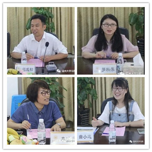 座谈会伊始,曾老师对优秀校友代表参加本次座谈会表示热烈欢迎。并邀请部分校友发言,他们分别就职于温州科技职业技术学院的10级思政罗科萍和13级思政曲小远、就职于浙江东方学院的12级思政闫成松和14级思政喻婷婷及就职于温州商学院的14级思政秦治霞。各位校友在对学院快速发展和取得的成绩感到骄傲和自豪,感谢马院的培养和教育的同时,以自身经历为依托,从生活、学习、工作等方面作了分享,并给予了在校研究生诸多建议,部分在校研究生也将其在校期间的所学所得进行了分享。
