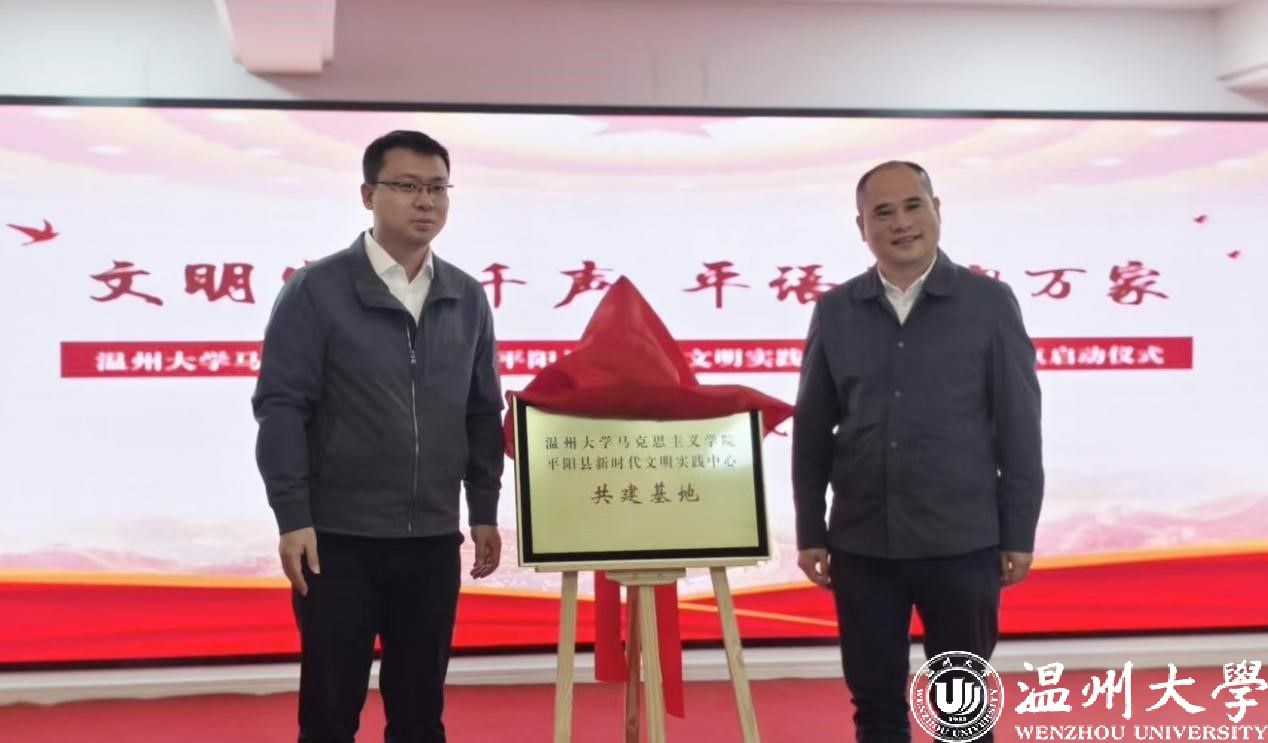 10月28日上午,黑料不打烊 与平阳县新时代文明实践中心共建启动仪式在平阳顺利举行。温州市文明中心室务会成员、二级调研员蒋维纲,城市文明促进处副处长张勇,平阳县委常委、宣传部部长蒋中梁、平阳县委宣传部副部长、县文明中心主任杨守总,黑料不打烊 院长卓高生、党委书记杨立淮,以及双方宣讲团师生代表共同出席。会议由平阳县文明中心副主任温从斌主持。