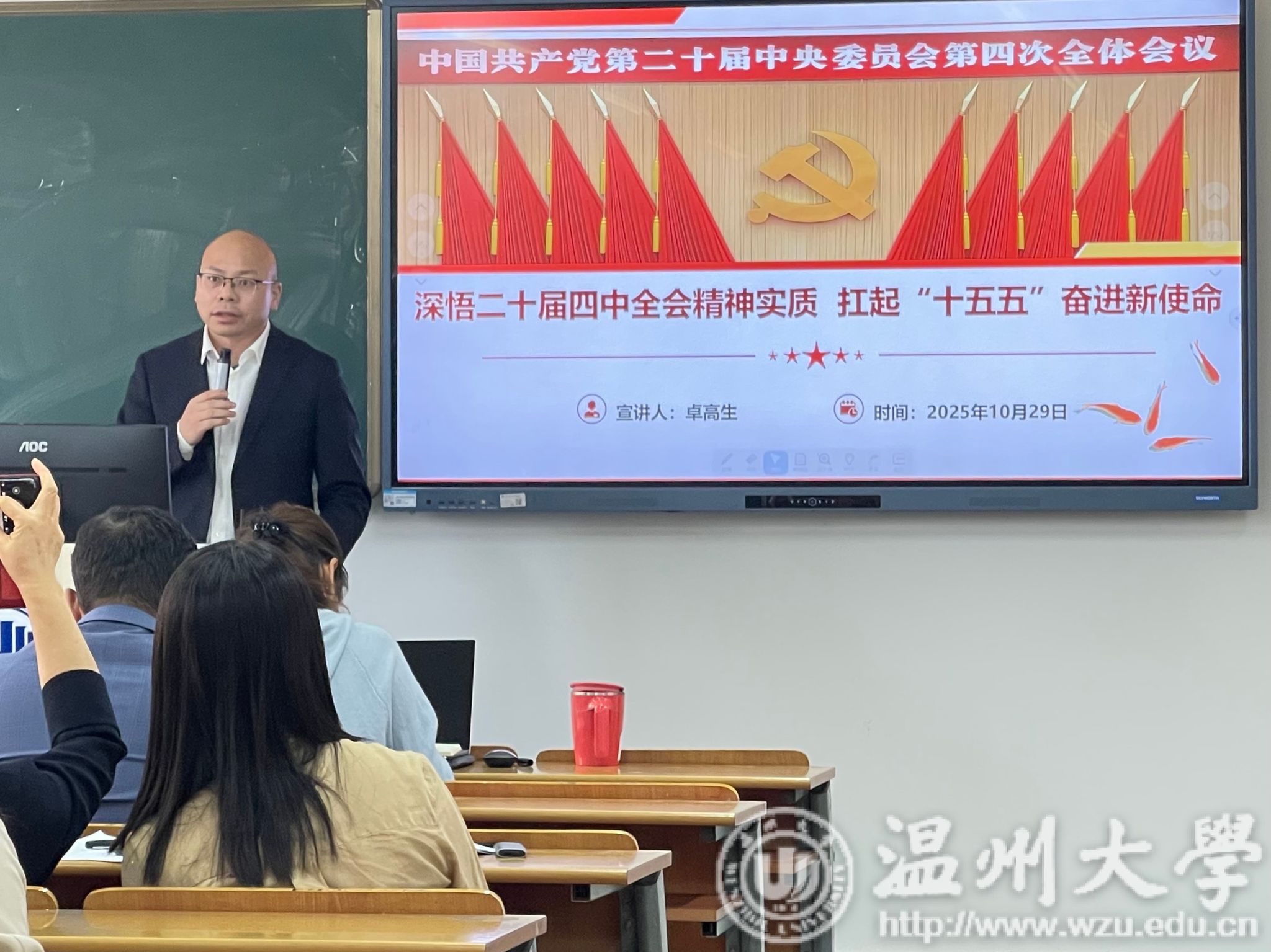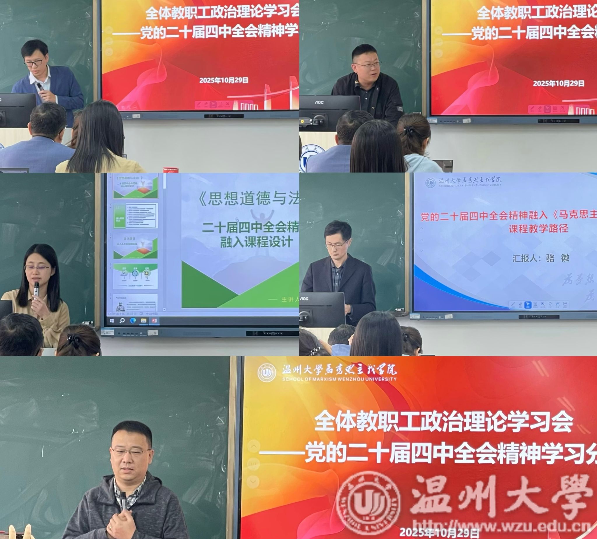 会上,詹良水、陈爱、张海波、骆徽、段智峰等老师作为教研室代表,依次上台分享学习感悟与实践思路,为全会精神融入教学科研、学科建设建言献策,凝聚起协同发展的共识。五位教师代表的发言紧扣学科特色与教学实际,既体现了对全会精神的深刻理解,也明确了具体可行的落地举措。