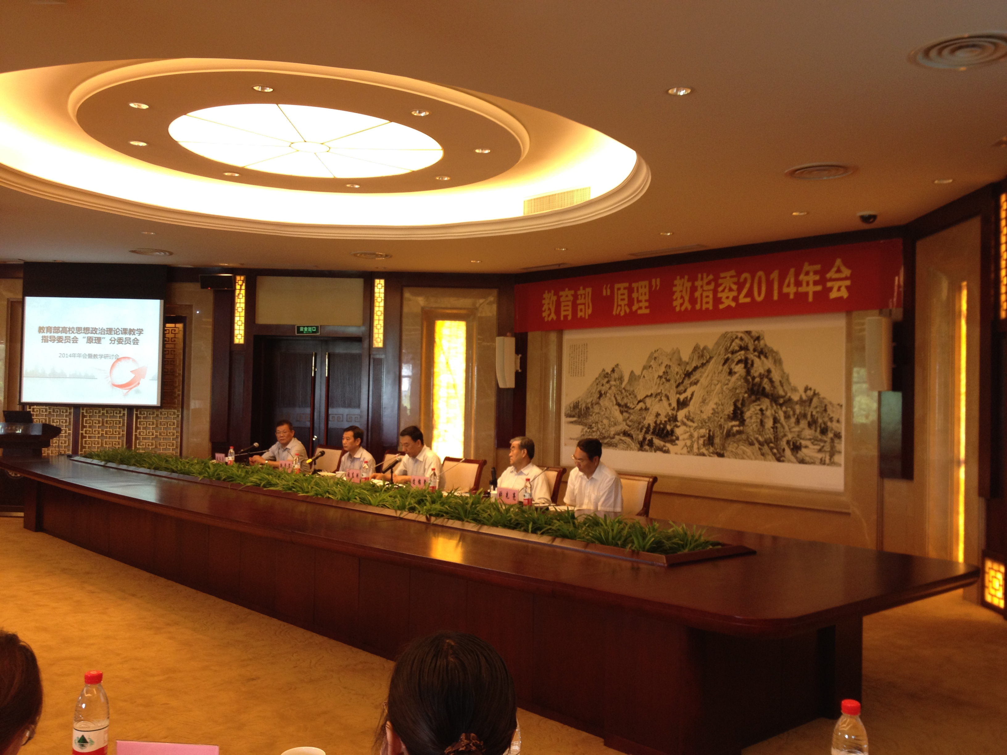 开幕式上,浙江工商大学校长张仁寿和省教育厅鲍学军副厅长分别致辞。教育部社科司司长张东刚,就如何贯彻落实习近平总书记关于加强高校思想政治理论课的重要指示精神作了指导讲话。原理教指委主任委员逄锦聚教授就如何讲好原理课作了专题报告。中国人民大学郝立新教授、张雷声教授和刘建军教授分别就“原理”课的教师用书、重难点解析和学生辅修读本的编写情况作了说明。 会议第二阶段,浙江工商大学何丽野教授、北京理工大学崔建霞教授、上海大学焦成焕副教授分别进行了20分钟的示范教学。南京航空航天大学王岩教授、北京师范大学白暴力教授、中国人民大学刘建军教授、云南师范大学陈路教授,浙江工商大学王来法教授,还有逄锦聚教授、张雷声教授对上述教学讲解做了精彩点评。在交流环节,浙江工商大学廖曰文教授介绍了2014年教育部思政课教学方法改革择优推广项目“高校思政课互动教学法探索与实践”的实施情况。会议还就原理课的教材、教师、教法以及实践教学、制度保障等问题进行了分组讨论。最后,原理教指委副主任、中国人民大学张雷声教授作了大会总结。