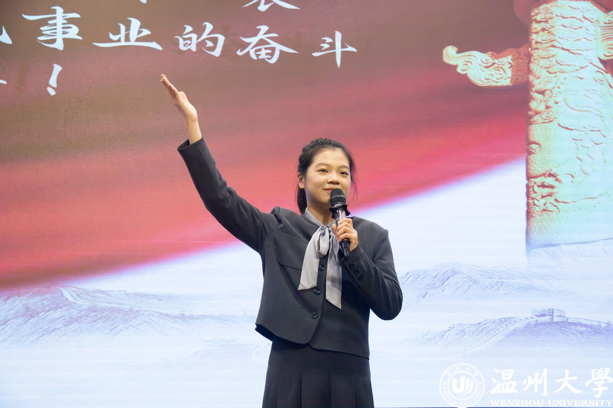 第三篇章:以艺展廉,传递清风力量。依托艺术传播特性,来自浙江交通集团高速公路嘉兴管理中心、正泰电器物流仓储服务部、正泰集团终端电器制造部、浙江交通集团高速公路温州管理中心的姚家辉、冯静怡、徐丽颖、朱最武等青年及团队,以艺术化视角传递清风力量。姚家辉所在的嘉兴管理中心团队以青年实践者视角,通过情景剧《绿通上的一阵“青”风》将抽象廉洁原则转化为具象岗位实践,增强廉洁认知的可感性;冯静怡作为青年职场人的冯静怡以她的视角在脱口秀《职场图鉴》中以通俗表达破除地域偏见,将职场廉洁与公平理念融入趣味叙事,降低廉洁教育的接受门槛;徐丽颖与其搭档朱嘉俊站在在青年文化传播者的角度,用相声《青谈廉洁》中以“古今对话”形式,从杨伯起拒金延伸至当代职场自律,用幽默语态强化廉洁自律的时代价值;朱最武与其搭档杨雷用青年信仰坚守者的视角,在朗诵《永远的誓言》中通过情感共鸣,升华廉洁誓言的精神内涵,实现廉洁文化的代际传递与精神赓续。
