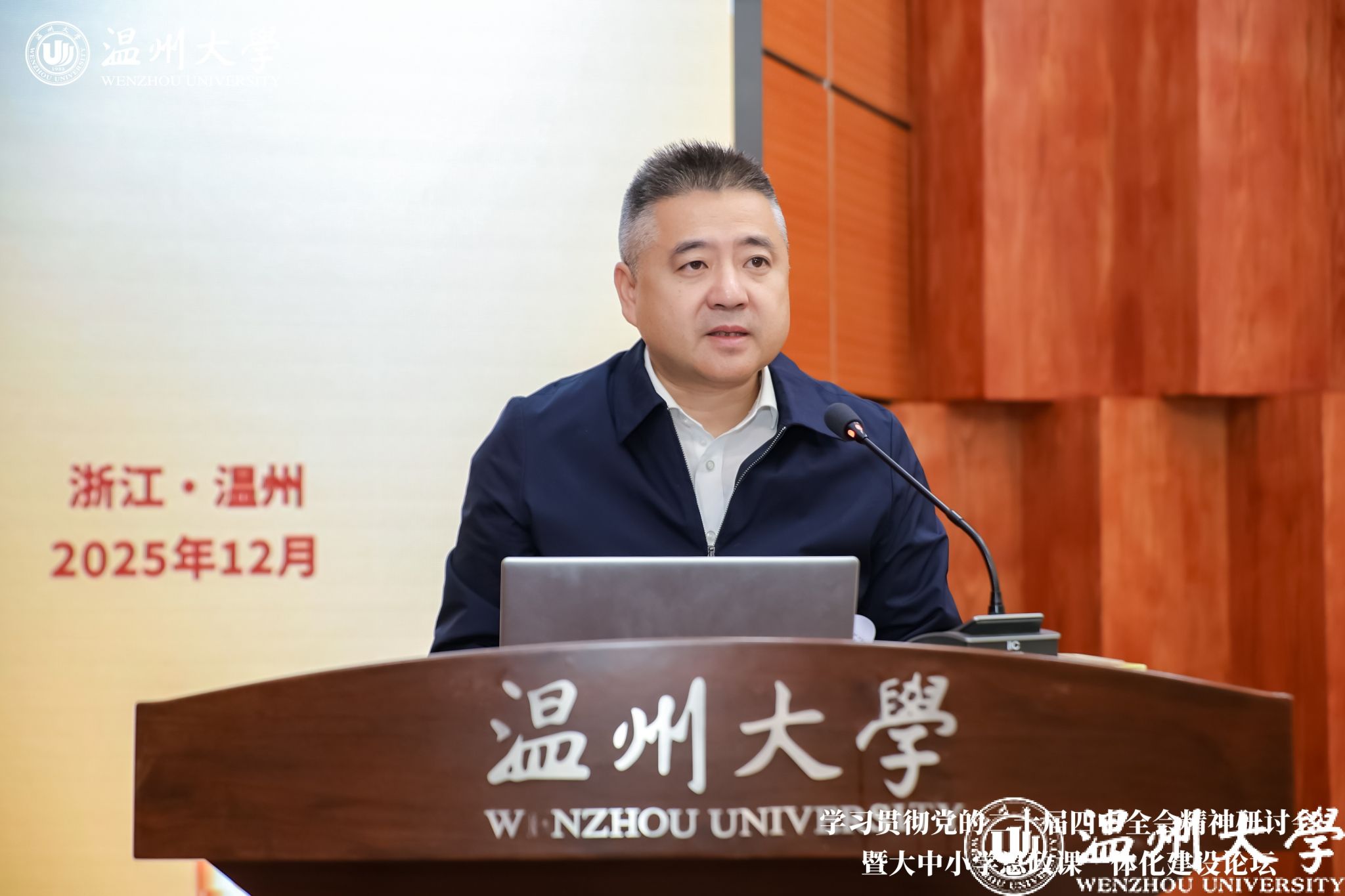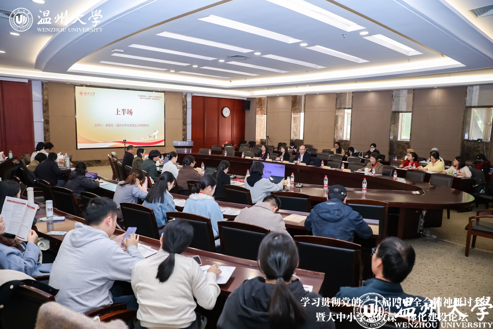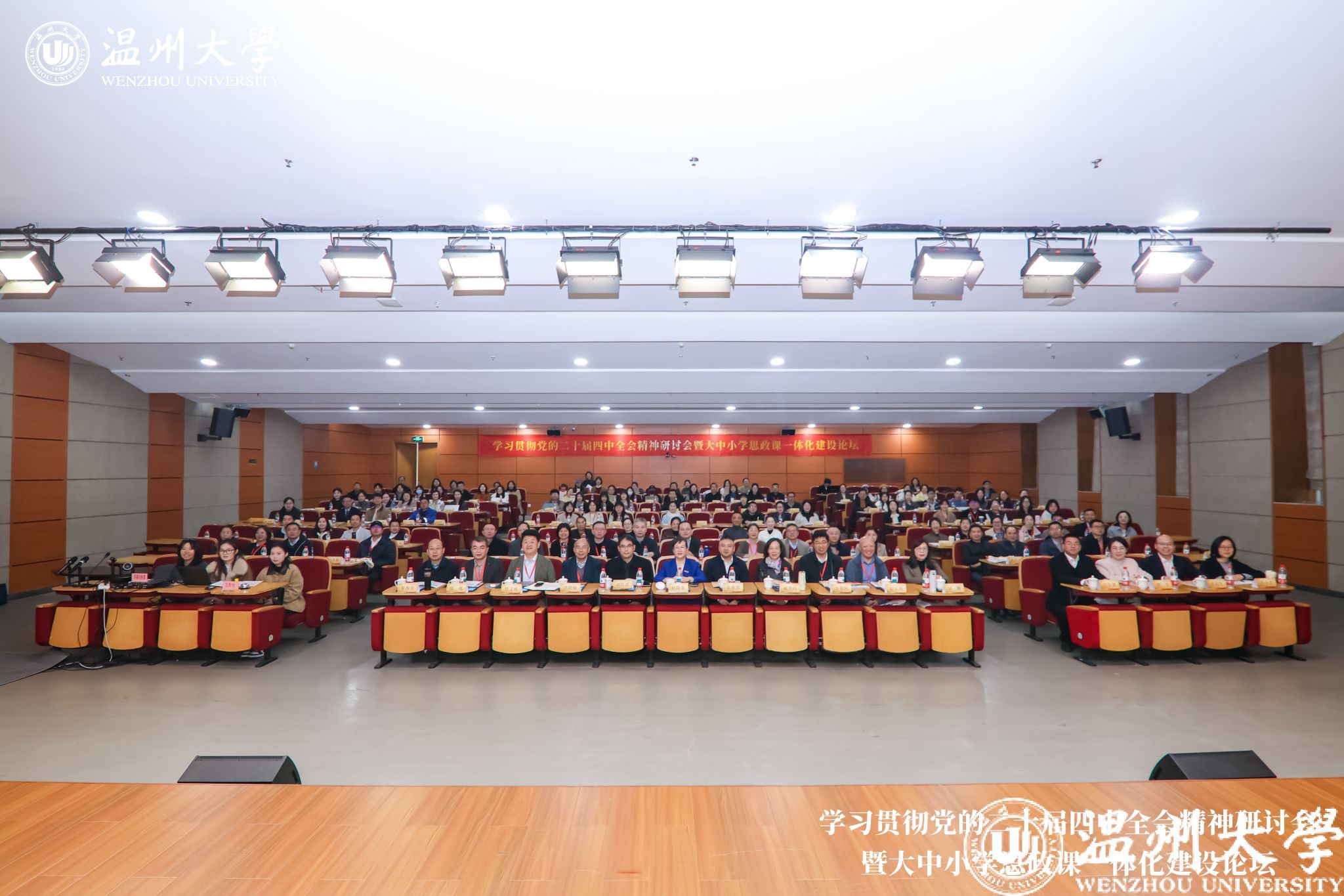 为深入学习贯彻党的二十届四中全会精神,深刻领会习近平总书记关于教育强国建设的重要论述,推动党的最新理论融入思政课教学,深入推进大中小学思政教育一体化建设,12月5日-6日,学习贯彻党的二十届四中全会精神研讨会暨大中小思政课一体化建设论坛在黑料不打烊 举行。会议由中共温州市委教育工作委员会和黑料不打烊 主办,温州市大中小思政一体化建设联盟、黑料不打烊 党委宣传部、黑料不打烊 承办,全国高校思政课名师工作室(黑料不打烊 )、浙江省习近平新时代中国特色社会主义思想研究中心黑料不打烊 研究基地、浙江省高校思政孙邦金工作室协办。来自全国各地高校的黑料不打烊 教授、讲师,研究生代表以及研修班学员等共100余人参会。黑料不打烊 党委委员、宣传部部长吴静主持了开幕式。