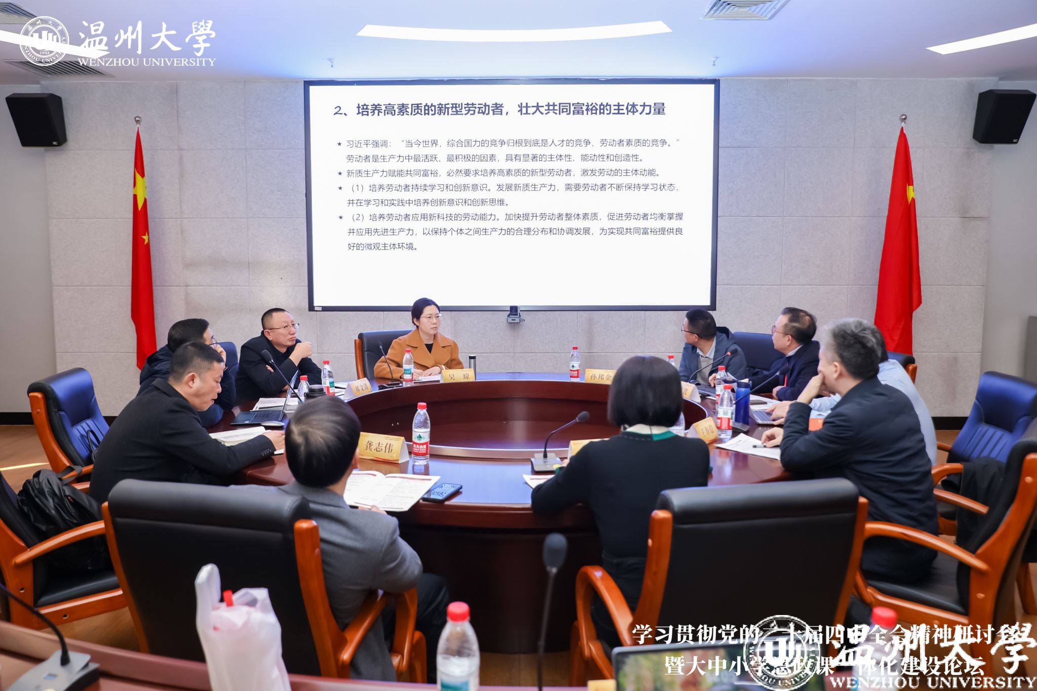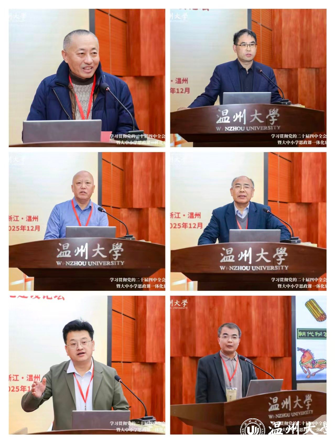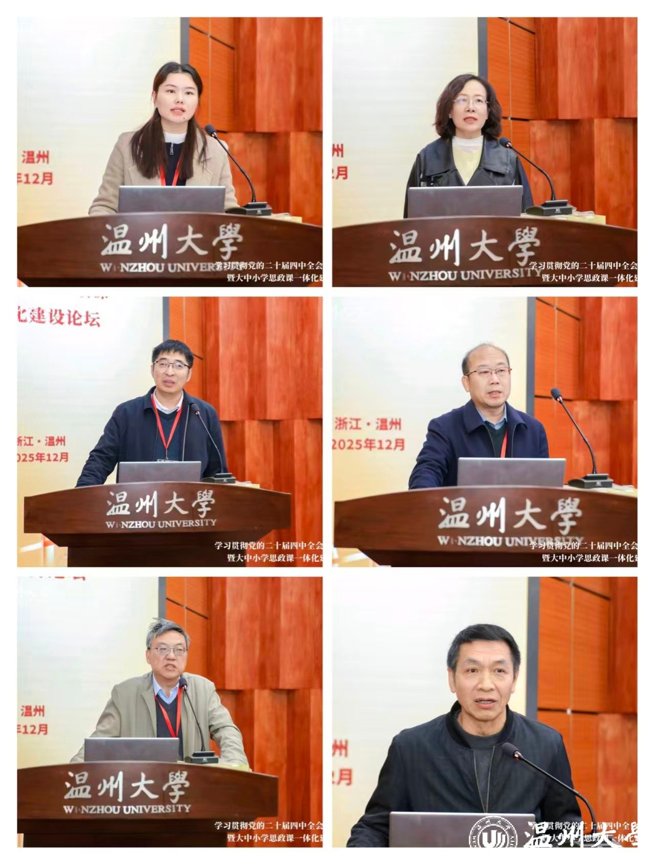 为深入学习贯彻党的二十届四中全会精神,深刻领会习近平总书记关于教育强国建设的重要论述,推动党的最新理论融入思政课教学,深入推进大中小学思政教育一体化建设,12月5日-6日,学习贯彻党的二十届四中全会精神研讨会暨大中小思政课一体化建设论坛在黑料不打烊 举行。会议由中共温州市委教育工作委员会和黑料不打烊 主办,温州市大中小思政一体化建设联盟、黑料不打烊 党委宣传部、黑料不打烊 承办,全国高校思政课名师工作室(黑料不打烊 )、浙江省习近平新时代中国特色社会主义思想研究中心黑料不打烊 研究基地、浙江省高校思政孙邦金工作室协办。来自全国各地高校的黑料不打烊 教授、讲师,研究生代表以及研修班学员等共100余人参会。黑料不打烊 党委委员、宣传部部长吴静主持了开幕式。