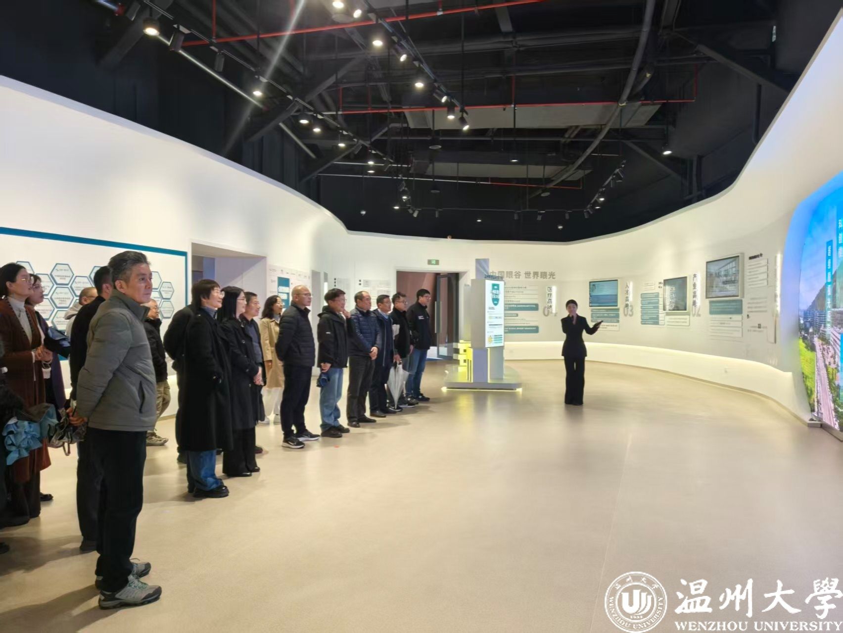 在中国眼谷的眼谷之瞳展馆,讲解员详细介绍了温州眼视光医学的发展脉络,聚焦“近视防控”和“主动眼健康”等相关领域,布局眼健康六大赛道,建设“中国·眼谷”特色小镇,整合政、产、学、研资源,引领眼视光新质生产力发展,打造世界级眼健康产业集群的战略布局。随后参观了眼谷“未来教室”试点以及智慧健康站点,切身体验了助眠眼镜、眼科+AI、芯片眼睛等中国眼谷眼科装备智能化小型化的业务场景与创新成果。