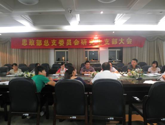 思政部党总支创先争优活动实施方案》组织与会人员进行讨论。同学们踊跃发言,为党支部创先争优活动的顺利开展献言献策。在总结大家的意见和建议后,徐家博就本学期深入开展创先争优活动进行了工作部署。
