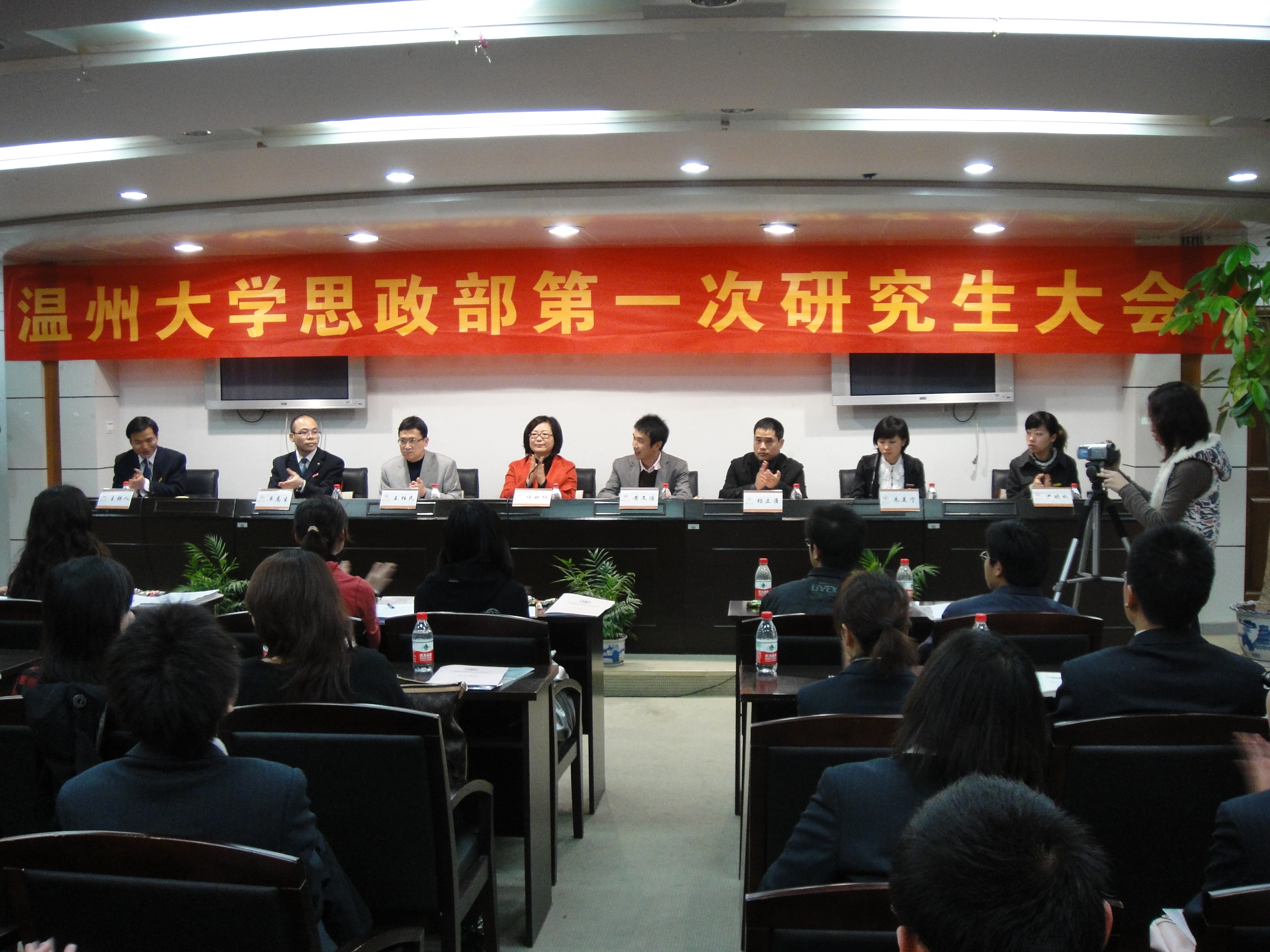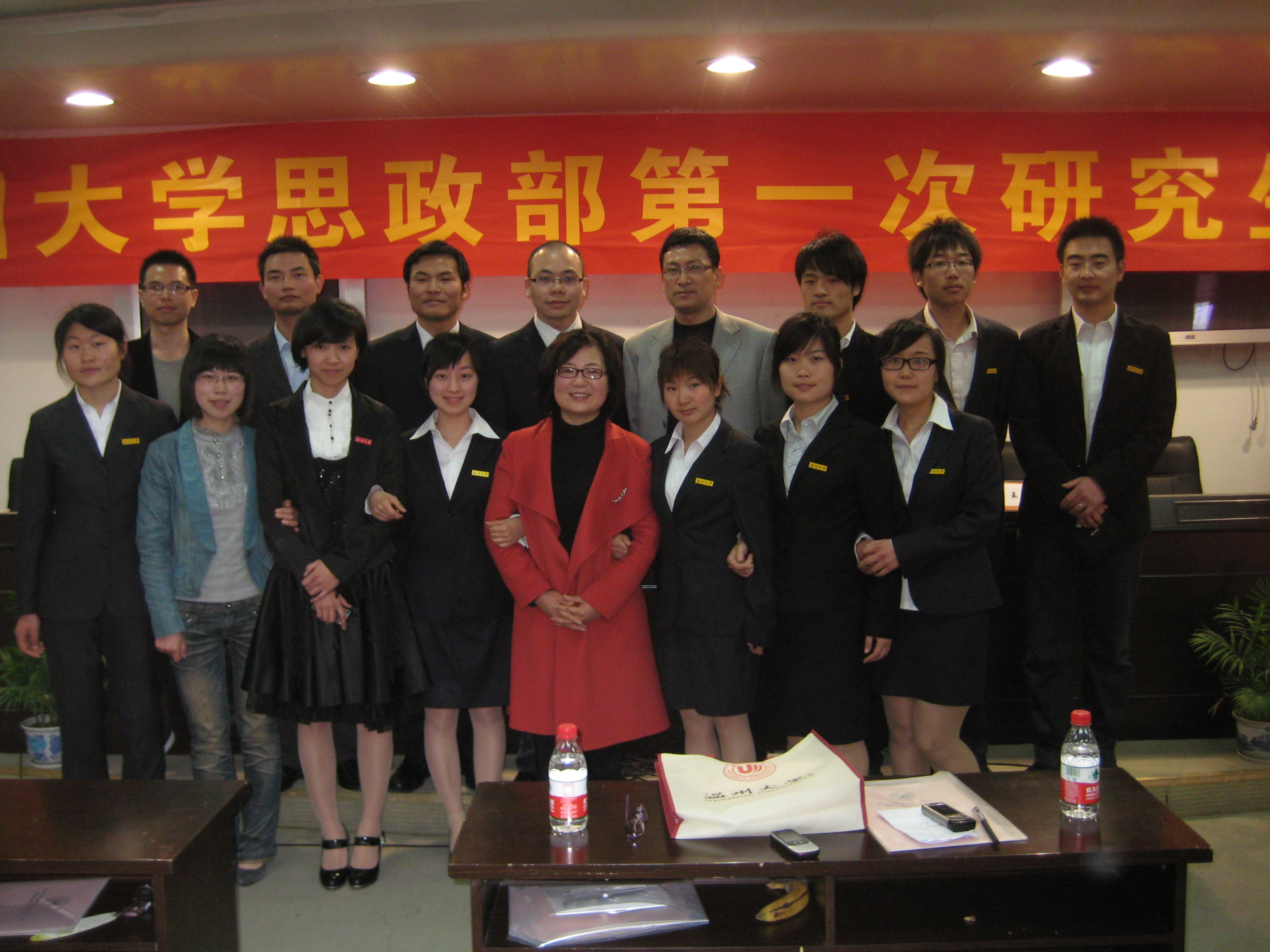 2010年4月10日上午,黑料不打烊 思政部第一次研究生大会暨思政部研究生会成立大会在北校区行政楼331会议室隆重举行。校研究生工作部副部长黄文浩、校团委副书记杨立淮、思政部党总支书记、主任任映红、副主任王柏民、朱美宁老师、卓高生老师出席了开幕式。