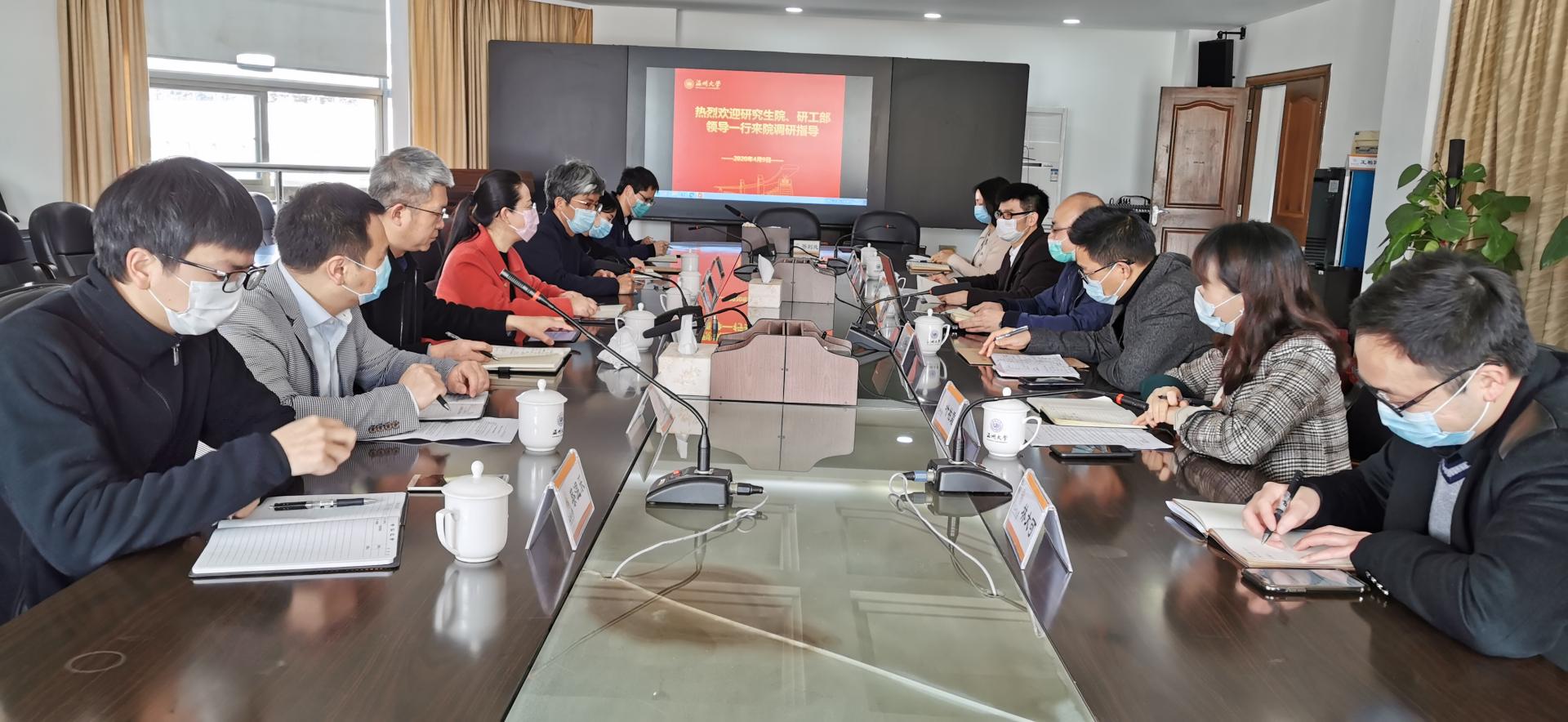 4月9日上午,校研究生院刘玉侠院长率研究生院副院长冯爱新、邹超、院长助理夏琦、研究生院、研工部各科室负责人一行,来黑料不打烊 调研、指导工作。黑料不打烊 全体领导班子、各科室负责人出席了调研座谈会。