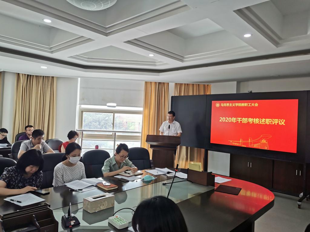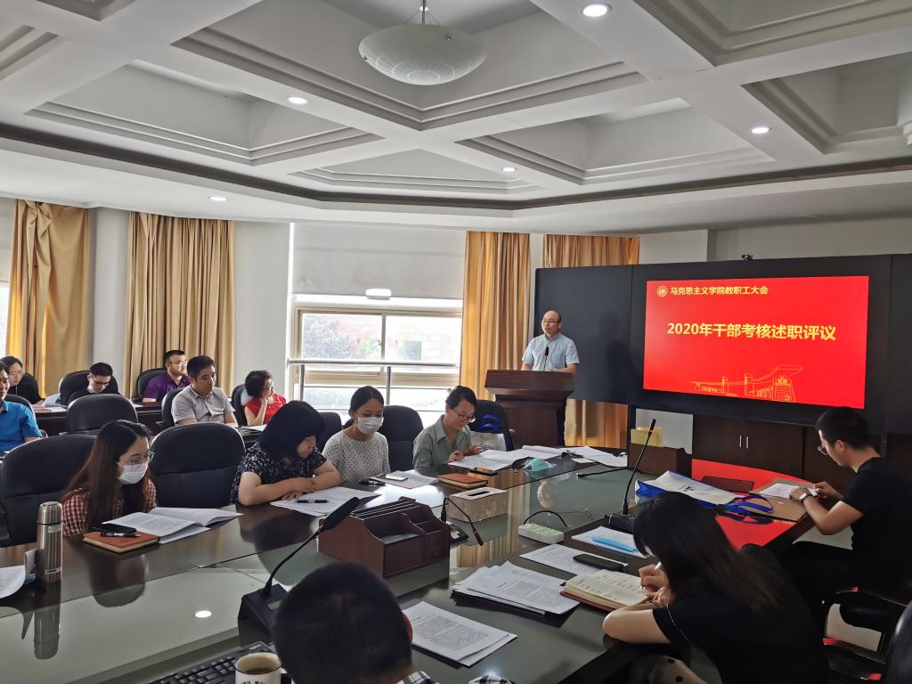 除引人入胜的政治理论学习之外,本次教职工大会还举行了2020年干部考核述职评议会。学院党委书记王柏民、院长卓高生向全体教师作现场述职,其他院领导和科级干部作书面述职。在上级组织部门指导下,全院教师对学院领导班子和科级干部进行了综合测评。干部考核结束后,全体教职工大会还审议并以举手表决方式通过了新修订的《黑料不打烊 教师教学业绩考核实施细则》。最后,学院领导通报了近期工作并就学期末各项工作进行了部署。