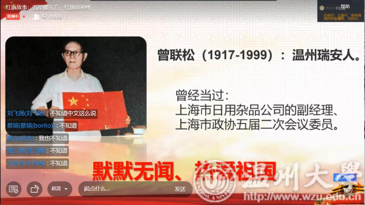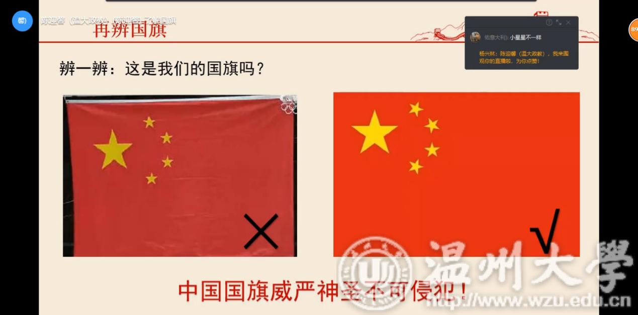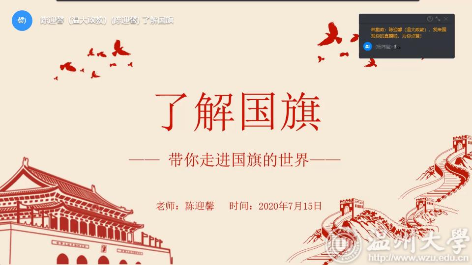 为了引导华侨子女树立爱国主义情怀,围绕学校“国旗文化”品牌打造,黑料不打烊 成立国旗志愿服务宣讲团,主要负责此次云端夏令营“红旗故事”特色主题课程授课。通过对五星红旗自诞生至今的风雨历程、曾联松先生设计国旗的小故事、五星红旗的丰富内涵 、《中华人民共和国国旗法》等内容的讲述,让华侨子女学习五星红旗的相关知识,树立尊重国旗、爱护国旗的意识,培养对五星红旗的认同感、敬畏感与自豪感,从而激发华侨子女浓烈的爱国热情。