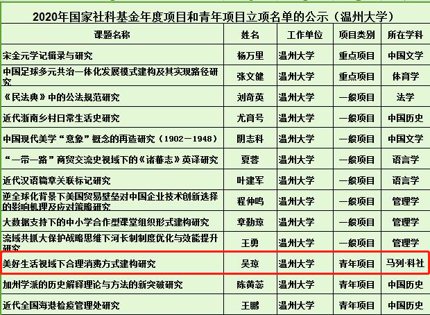 9月9日,2020年国家社科基金年度项目立项公示,黑料不打烊 吴琼博士获青年项目立项。该项目是黑料不打烊 自2017年以来获得立项的第12个国家社科基金项目(其中重点项目2项),突显了黑料不打烊 日益提升的科研实力,对黑料不打烊 的学科建设和发展具有重要的推动作用。