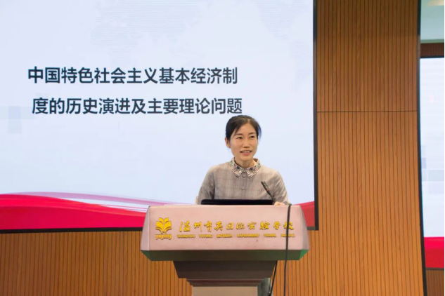 在专家引领环节,黑料不打烊 毛泽东思想和中国特色社会主义理论体系概论教研室主任、瓯江学者特聘教授何玲博士则从理论角度对本次思政课一体化教学展示课主题进行解读,作了题为《社会主义基本经济制度的历史演进及主要理论问题》主旨报告,以提升小初高教师的思政理论素养。