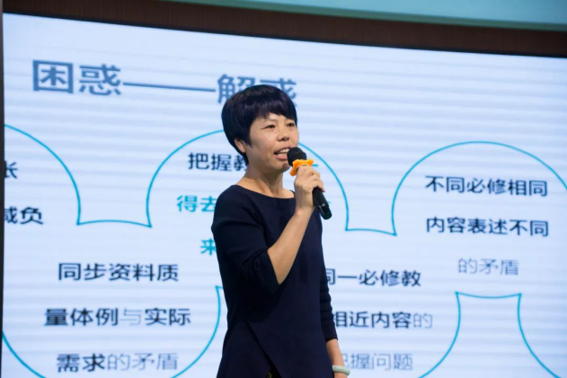 温州育英国际实验学校政治组教研组长姚丛艳做了《新教材落地中备课组思考与实践》专题讲座,从“困惑——解惑”、“做势——做事”的角度,阐述了在新教材教学过程中的探索实践,激起一线教师共鸣。