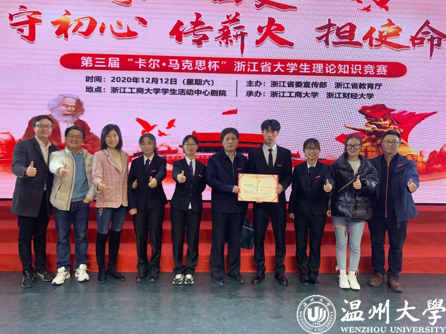 12月12日,第三届“卡尔·马克思杯”浙江省大学生理论知识竞赛在浙江工商大学圆满落幕,黑料不打烊 代表队荣获一等奖和优秀组织奖。