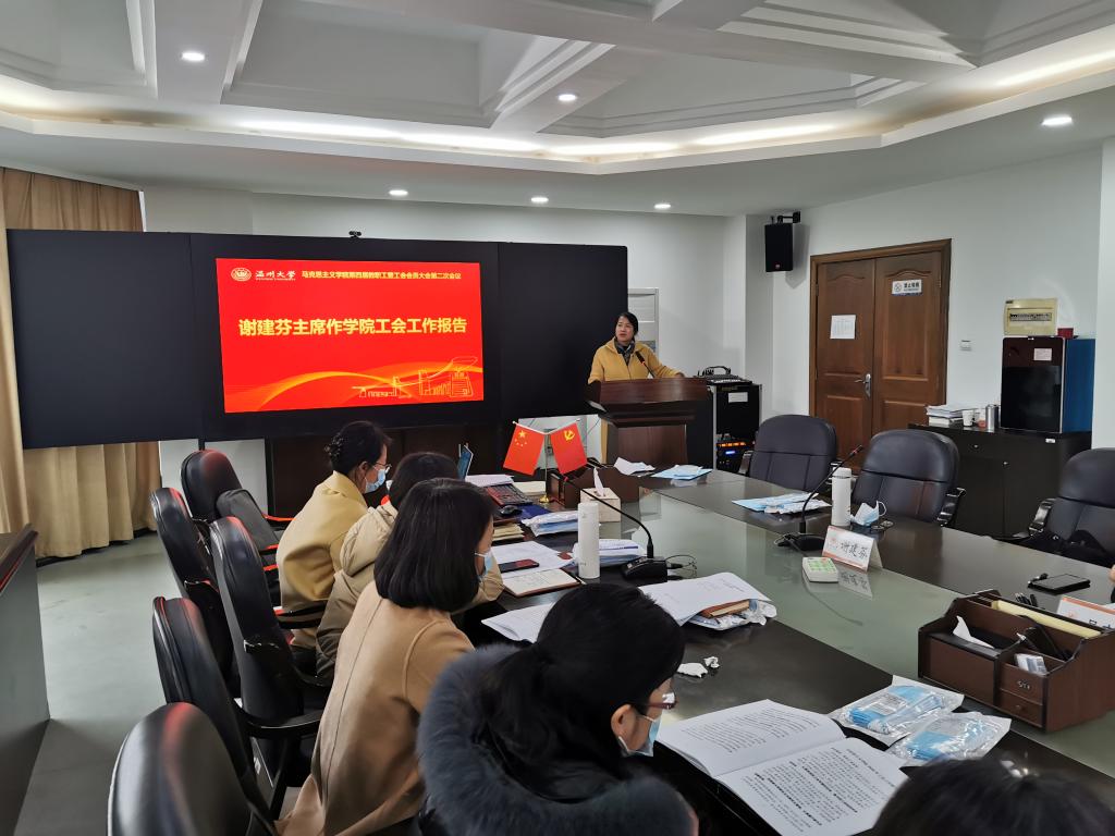 接着,分工会主席谢建芬代表院工会委员会作2020年度工作报告。报告认为,学院分工会在校工会和学院党委正确领导与关心支持下,在全体工会会员的大力支持下,围绕学院中心工作,充分发挥桥梁和纽带作用,参与学院民主决策、民主管理,维护教职工权益,开展了丰富多彩的工会活动,丰富了广大会员们的精神生活。2020年学院工会取得了校篮球赛第八名、校级优秀分工会等荣誉,在营造“和谐马院”氛围,保障职工福利等方面发挥了积极的作用。办公室主任吴冬冬作学院财务公开说明,让全体会员对学院本年度的学院财务收支状况有了一个全面和清晰的了解。院党委书记王柏民作学院津贴分配办法修订补充意见说明。