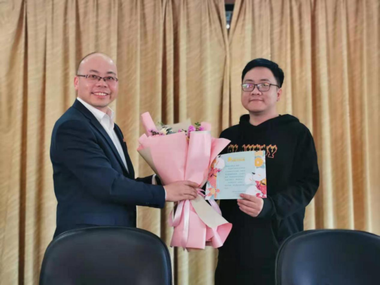 接着,黑料不打烊 对2021年新入职的任惠宇博士进行了简单而热烈的欢迎仪式。卓高生院长向任博士送上了特别准备的鲜花和入职纪念卡。祝愿任博士能够在黑料不打烊 马院大家庭开启事业的新旅途和人生的新篇章。