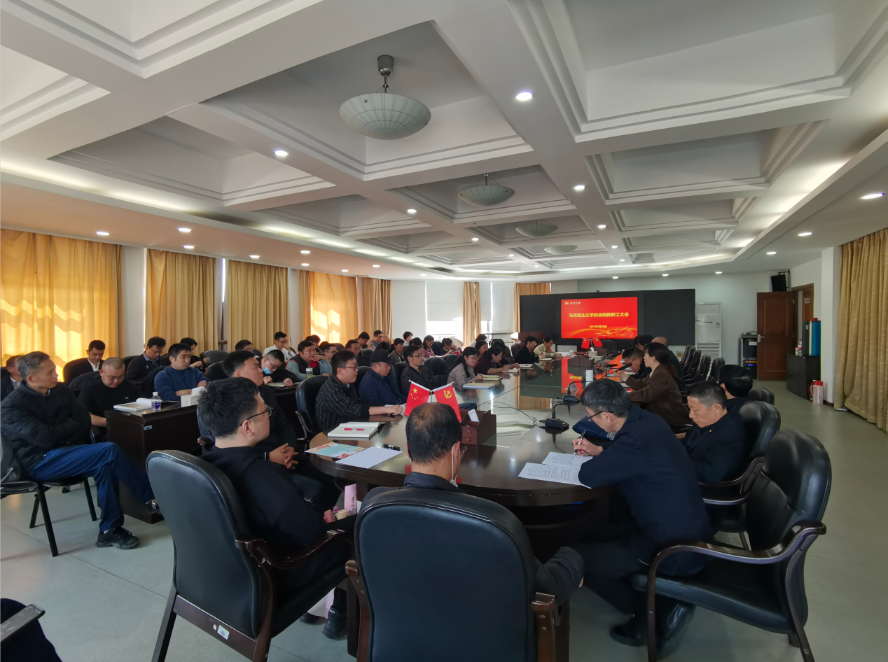 卓高生院长结合学校新学期全体教职工大会会议谢树华重要讲话和赵敏校长工作报告精神,就黑料不打烊 重点工作进行部署。他号召黑料不打烊 全体教工要深入学习会议精神,围绕“锚定3818,奋进2021”主题和“牢记殷殷嘱托,锚定三大目标,推进八大战略,实施十八大项目,奋力书写黑料不打烊 高质量发展新篇章”主线,在学科建设、专业建设、思政课改革与创新、人才培养、科学研究、师资队伍建设、党建与服务地方等各项工作聚智聚力、同心同德,共建高水平发展马院。