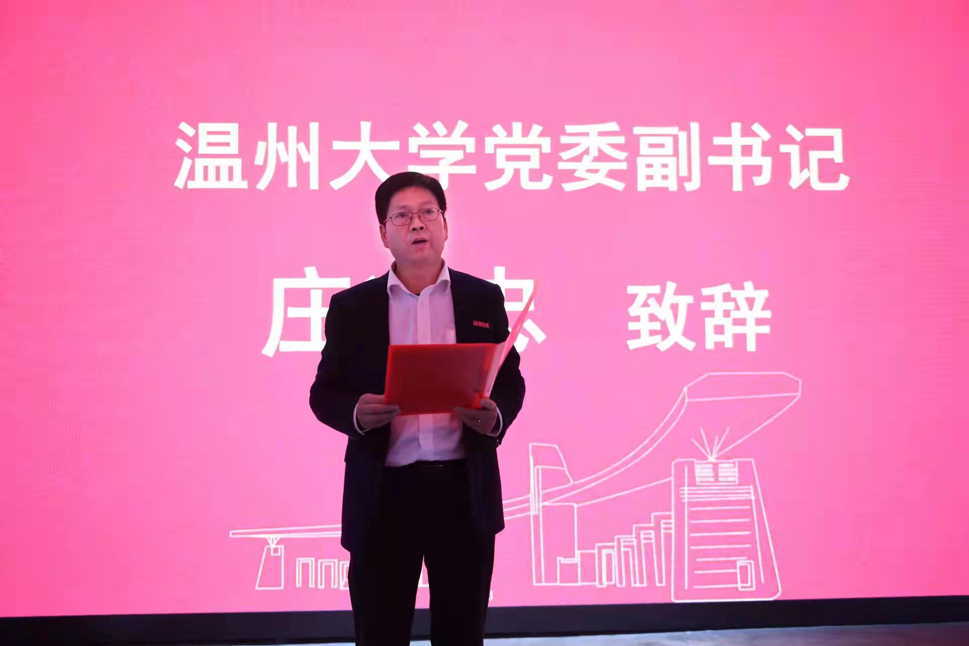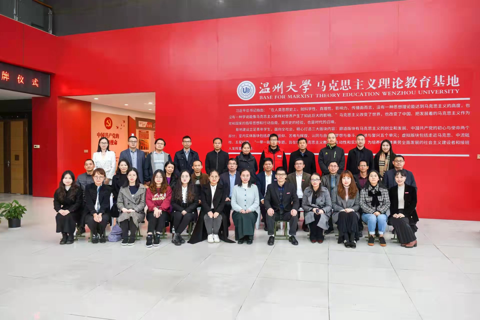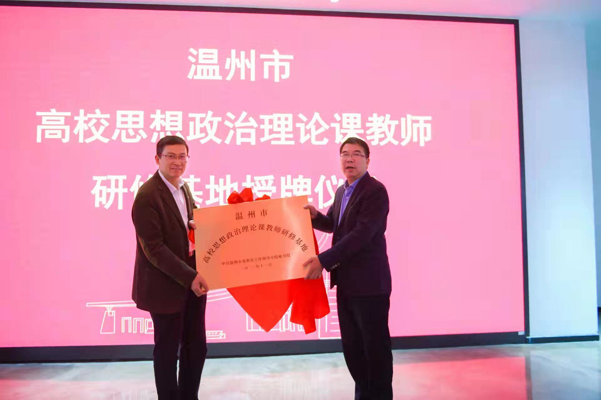 仪式主要分为两个阶段进行:第一阶段,授牌仪式及参观基地;第二阶段举行“新时代高校思政理论课教师队伍建设”论坛。仪式开始,黑料不打烊 党委副书记庄兴忠和温州市教育局党委副书记白炳兴先后在授牌仪式上致辞。