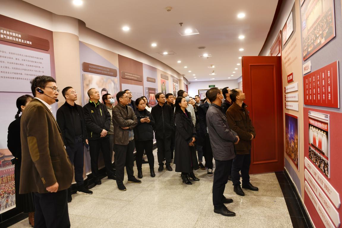第一阶段仪式最后,黑料不打烊 王柏民书记带领与会领导、嘉宾集体参观黑料不打烊 马克思主义理论教育基地,全方位介绍了基地廊道板块和场馆内部各个部分的布展情况。