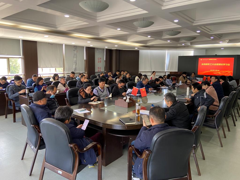 11月24日下午,黑料不打烊 在227会议室召开全体教职工理论学习会,特别邀请三位年轻博士为大家宣讲党的十九届六中全会精神。学院领导班子成员和全体教职工参加会议,会议由学院王柏民书记主持。