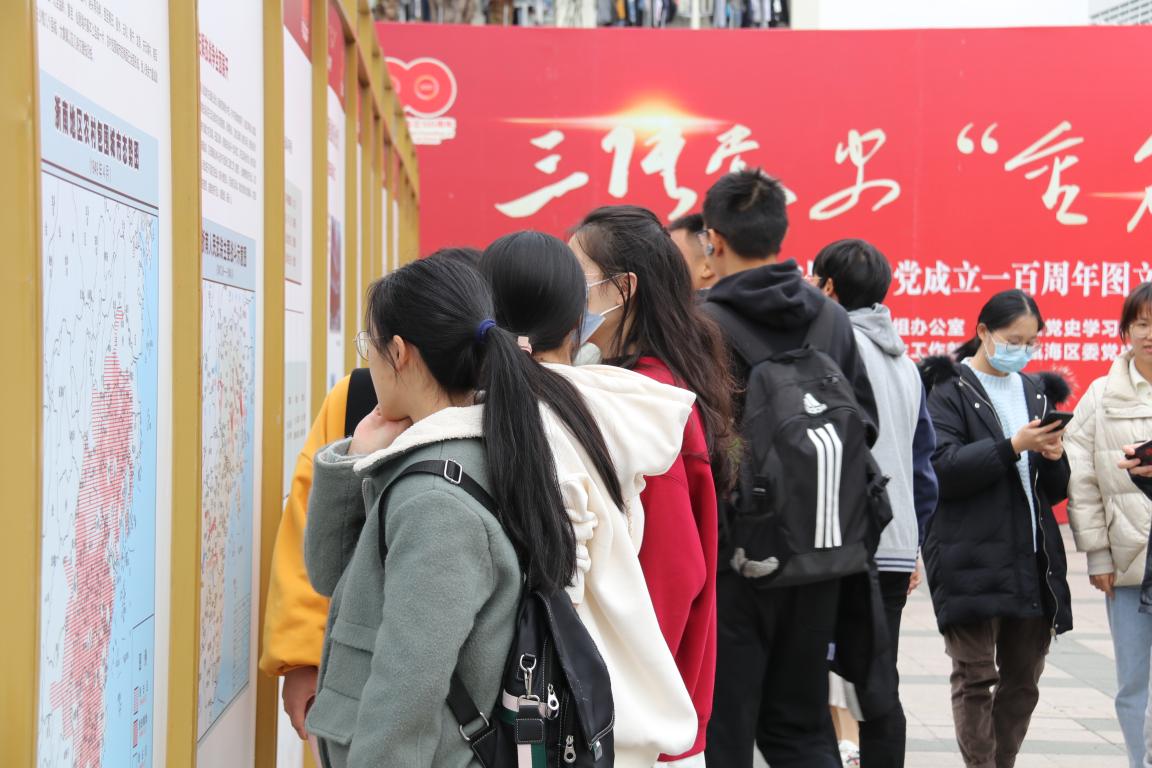 为传承红色基因、赓续精神血脉,帮助学生深入学习党史,了解当前形势政策,增强对党和国家的认同感与归属感,12月8日下午,黑料不打烊 组织19、20、21级本科生于南校区怡口乐教工餐厅前广场参观党史教育图片展。