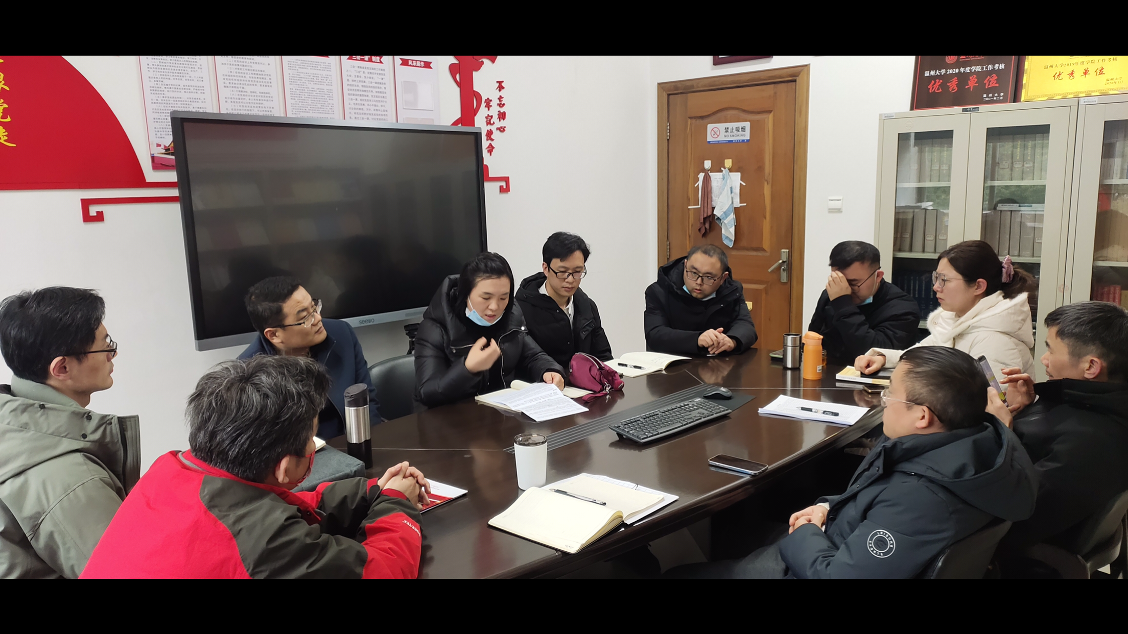 为落实立德树人根本任务,加强新时代教师队伍建设,增强教师教学质量意识,引导教师潜心教学育人,进一步提升集体备课规范化、制度化、常态化,原理教研室全体同仁于2022年2月19日下午14-16点,在222会议室召开新学期集体备课会。房间虽小,天气虽冷,但是老师们的讨论热情让备课会充满了智慧的火花和浓浓的友情味。
