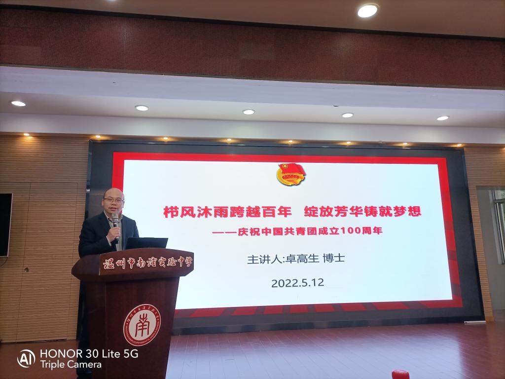 仪式主要分成四个阶段:第一阶段,新团员退队入团仪式;第二阶段,少年思政学院成立揭牌与颁发校外导师聘书,卓高生教受聘担任南浦实验中学少年名誉院长;第三阶段,黑料不打烊 本硕校外实践教学基地签约授牌仪式;第四阶段,南浦实验“博士讲坛”第一讲开讲,卓高生教授为在座的学生与老师做《栉风沐雨跨越百年 绽放芳华铸就梦想——庆祝中国共青团成立100周年》专题讲座。