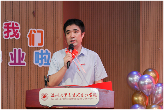 卓高生院长深情寄语全体毕业生。首先他代表全体马院人向毕业生圆满完成学业表示热烈祝贺。他指出每一届马院学子都有着与马院的独特记忆。在这四年中马院快速发展,与同学们一道,度过了一段精彩岁月。在同学们即将步入社会之际,向同学们提出了几点希望:一是希望同学们永远志存高远,始终不忘心系家国的赤子情怀;二是希望同学们永远实学实干,不断锤炼堪当重任的过硬本领;三是希望同学们永远自信勇敢,一直保有乘风破浪的英雄气概。马院永远会是同学们最忠实的守望者,守望每一位学子的未来!期待同学们的归来!