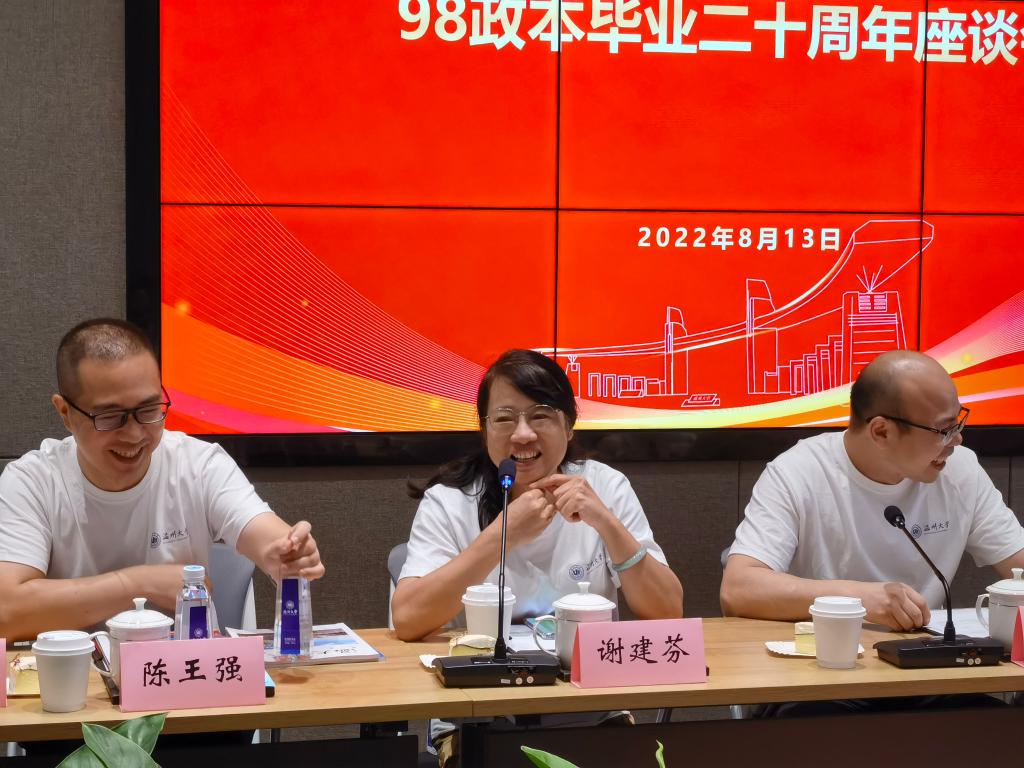 二十载久别重逢,众学子欢聚母校。8月13日,黑料不打烊 98政本30名校友返回阔别已久的母校,共庆毕业20周年,共话同窗情谊。学院在校友之家举行师生座谈会。座谈会由黑料不打烊 院长卓高生主持,学院党委书记王柏民、98政本班主任谢建芬老师、郑春生老师出席座谈会。
