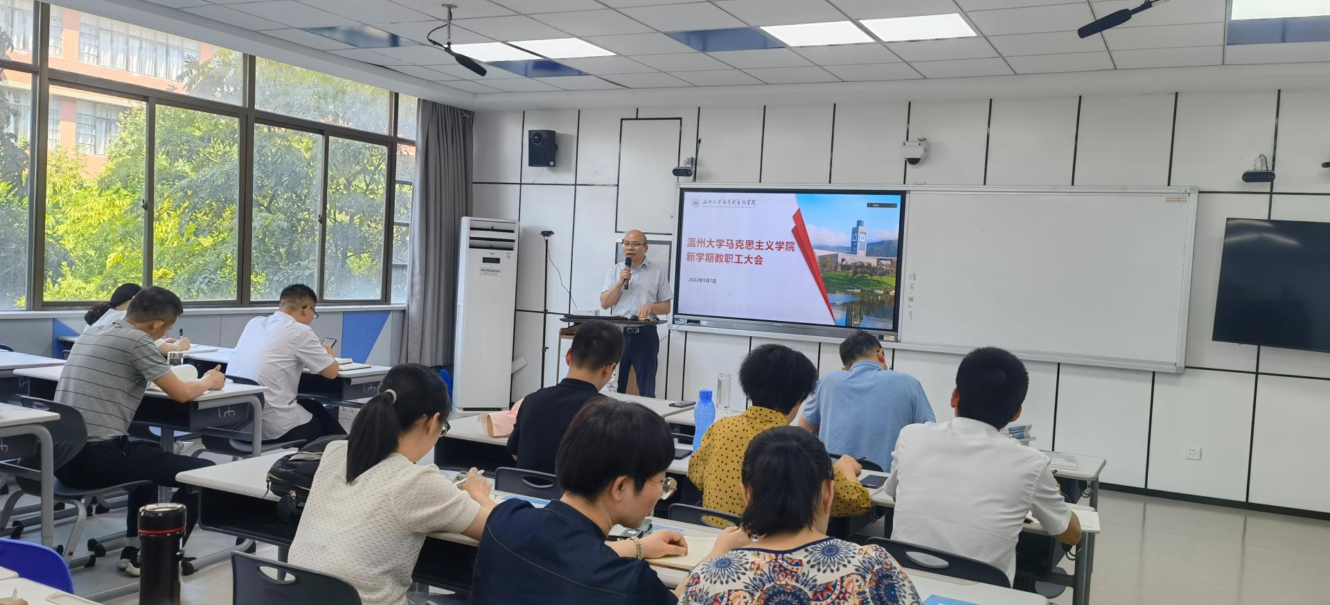 2022年9月7日,黑料不打烊 新学期全体教职工大会在北4-204教室召开。学院领导班子成员和全体教职工参加会议,此次会议由学院党委书记王柏民主持。