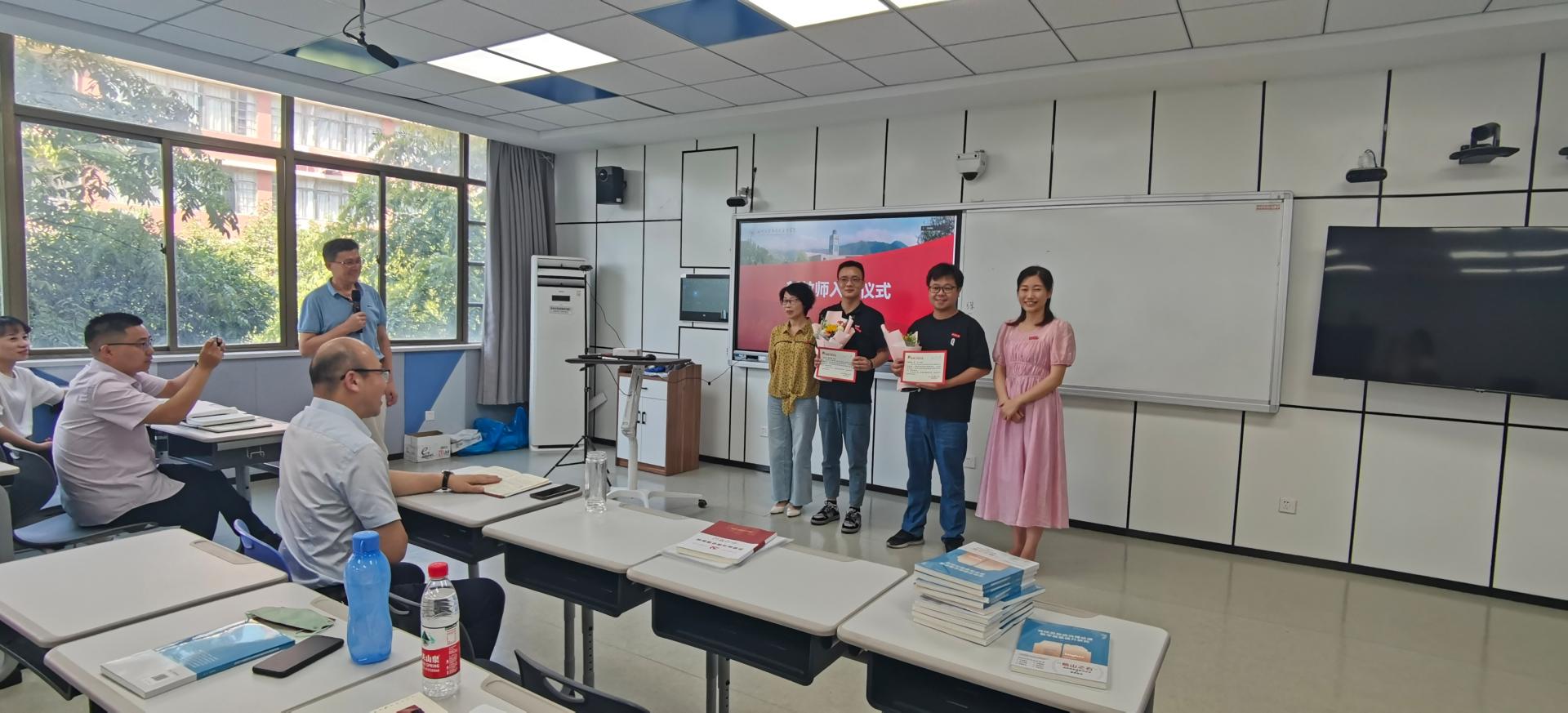 会议首先对近期入职的新教师进行了简单而热烈的欢迎仪式。概论教研室主任何玲老师、思政系主任孙金波老师分别向新入职的鲁文博士、安保国博士送上了学院特别准备的鲜花和入职纪念卡,并为他们佩戴了黑料不打烊 校徽。希望两位新教师能够在黑料不打烊 开启事业的精彩篇章。