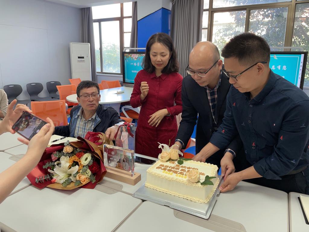 会上,由学院领导为童帆老师送上了精心准备的鲜花和光荣退休纪念品,大家一起为童帆老师庆祝了生日。