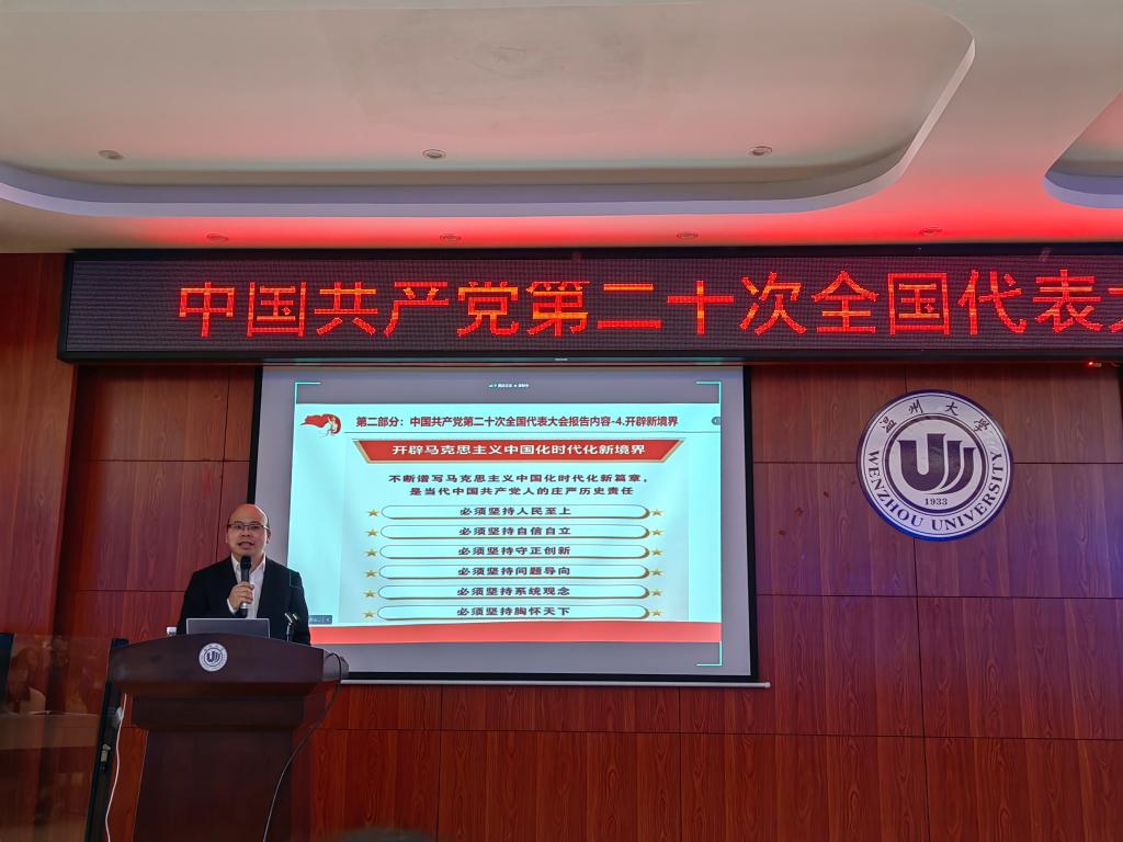 卓高生院长的二十大报告导学辅导分三部分,一是介绍党的二十大基本情况,二是概括党的二十大报告主要内容,三是分享学习贯彻党的二十大报告的几点思考。