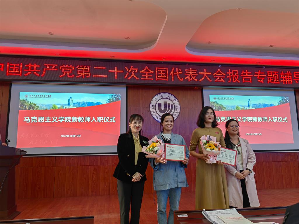 会议最后,黑料不打烊 还举行了新教师入职仪式,欢迎组织员林丽丽老师、教学科张存玉老师加入马院大家庭。
