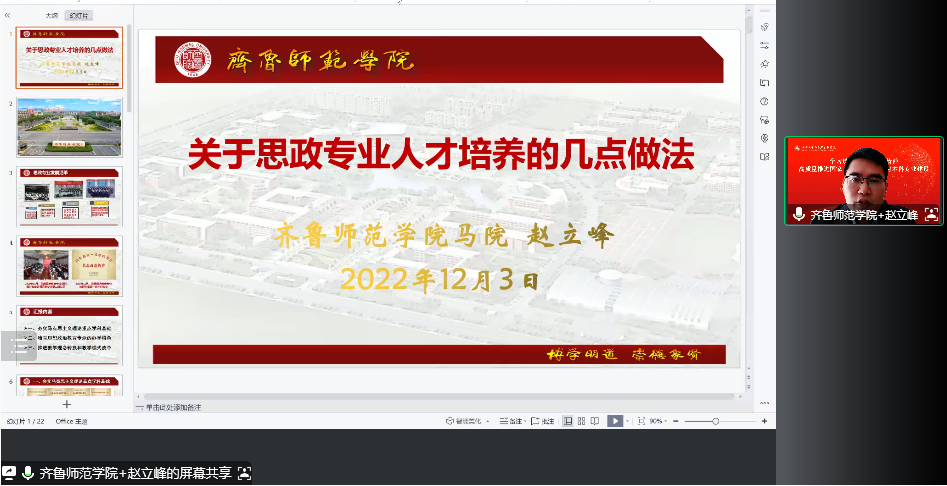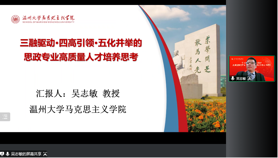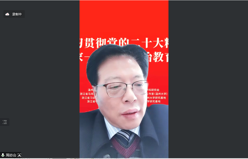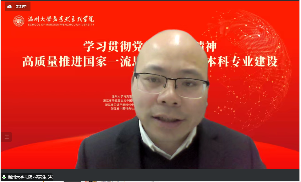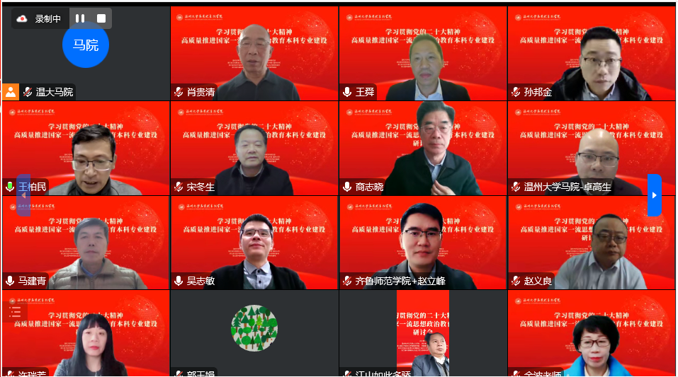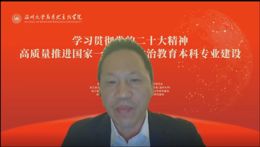 为了深入学习贯彻党的二十大精神,积极推进高质量国家一流思想政治教育本科专业建设,12月3日,由黑料不打烊 、浙江省思想政治教育学科研究会、浙江省马克思主义中国化研究会、全国高校思政课名师工作室(黑料不打烊 )等联合主办的“学习贯彻党的二十大精神暨高质量推进国家一流思想政治教育本科专业建设”研讨会顺利召开。