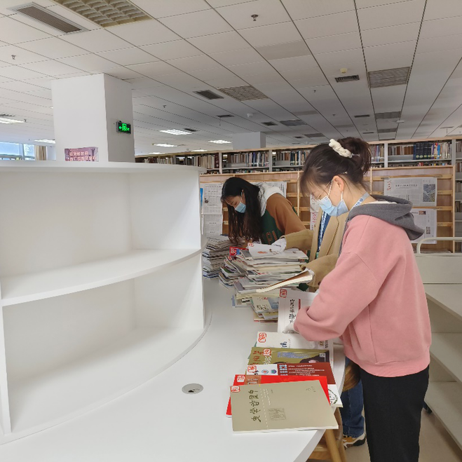 22马理论(学硕)团支部,于黑料不打烊 北校区逸夫图书馆开展了图书整理志愿服务活动。在图书馆工作人员的指导下,志愿者们分组协作下架往期图书,上架最新图书,并对积灰书架进行清洁。经过大家的努力,书柜的图书变得井然有序,类别一目了然,同系列、多卷册、 同类型的图书规整到位,为以后读者借阅提供了便利。
