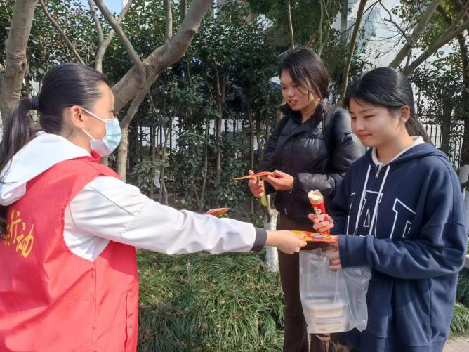 22政教1班团支部在高教园区内进行“春寒一帖千秋暖,弯腰扶起序井然”的志愿服务活动。玉兰花开,三月回暖,但难免有春寒料峭,同学们在团支书的带领下,分散在各个路口,将准备的暖宝宝发送给经过的同学们,为还未从冬天回过神来的人们带去一份暖意。