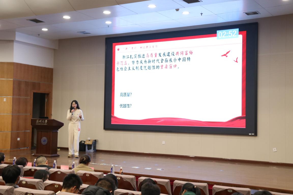 此次思政微课大赛不仅为马院师生呈现了一场精彩纷呈的宣讲盛筵,更是将党的二十大精神和“八八战略”发展成果在思政育人的实践中转化为激励马院青年奋勇争先、建功立业的精神力量。