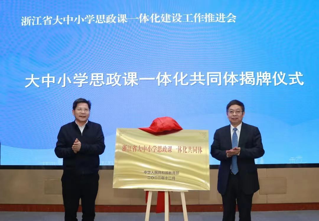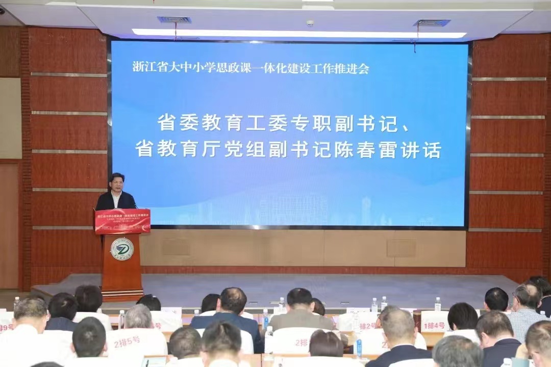 陈春雷指出,全省各大中小学要切实把大中小学思政课一体化建设摆在重要位置,以成立省大中小学思政课一体化建设联盟为契机,加快推进思政课一体化建设,扎实推动新时代思政工作高质量发展。他要求,要突出工作重点,结合不同学段学生心理特点和教育规律办好思政课,建好专职教师队伍,打造好新平台。要加强工作协同,强化机制建设、课题研究和总结交流,推动校际协作、教师协作、校地协作,统筹推进大中小学思政课一体化建设。要擦亮工作品牌,打造特色教材、特色课程和特色实践活动,形成具有浙江辨识度的大中小学思政课一体化建设品牌。
