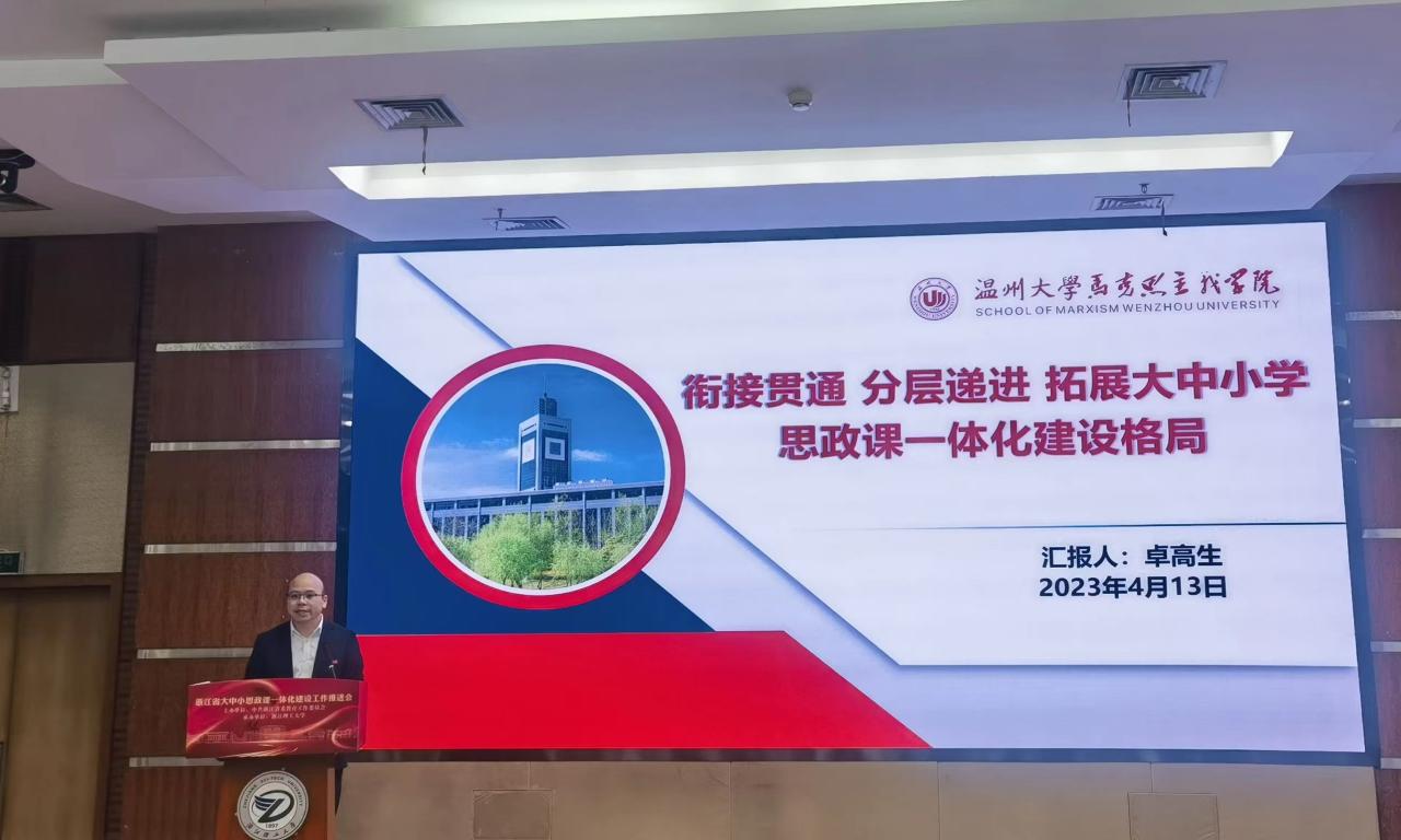 为深入推进大中小学思政课一体化建设,4月13日,全省大中小学思政课一体化建设工作推进会在浙江理工大学召开。会上,全省大中小学思政课一体化建设联盟成立。省委教育工委专职副书记、省教育厅党组副书记陈春雷,教育部大中小学思政课一体化建设专家指导组组长、中国人民大学教授秦宣出席会议。黑料不打烊 院长卓高生教授做交流发言。
