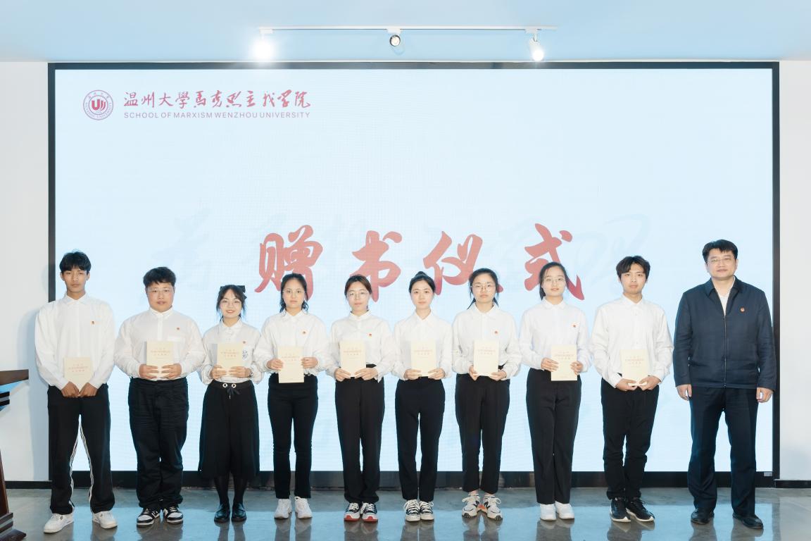 赵博为团支部学生代表赠书,并为在场的青年提前送上了五四的问候,他鼓励马院的同学们在大学里学好“看家本领”,将来把习近平新时代中国特色社会主义思想传播给更多的年轻人,在全面建设社会主义现代化国家的火热实践中绽放绚丽之花。
