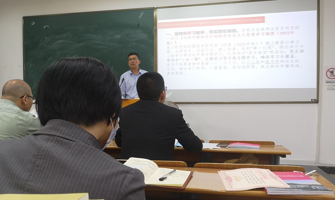 5月24日周三下午,黑料不打烊 召开全院教工党员大会,传达学校通知精神,开展学习贯彻习近平新时代中国特色社会主义思想主题教育先学先行工作动员部署。