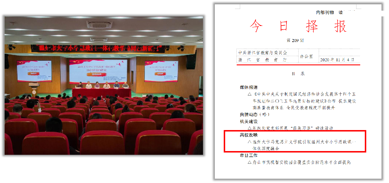 近年来,黑料不打烊 与温州市委宣传部、教育行政部门及市域范围内各级各类学校密切合作、协同联动,探索出“以健全工作机制拓展大思政格局,以课程教学为核心促一体化内容贯通,以师资联合培养为着力点建一体化队伍”的大中小学思政课一体化建设新格局。
