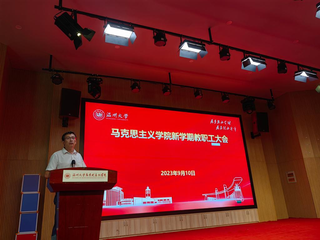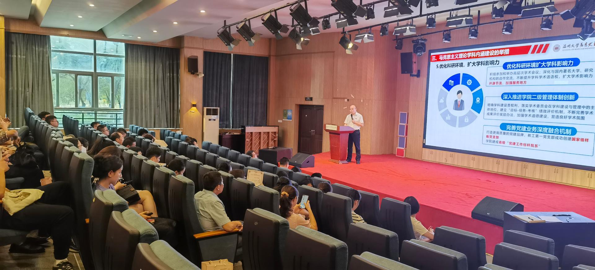 会议第三项议程,卓高生院长围绕学院重点工作进行了讲话。他回顾了学院的暑期工作,对新学期的主要工作进行了阐述和部署。刚刚结束的暑期,学院全体教师在学院班子的正确领导下,团结奋进,在学科建设、博士点申报、思政课教师集体研修、学院办公用房改造等二十项工作中取得重要进展,新学期伊始学院将在迎新、思政课开学第一课等五个方面开启新气象。随后,卓院长重点结合学校冲击“双一流”、建设高水平地方大学新目标,就马院学科高质量发展做题为《科学谋划抢抓机遇,耕耘不辍久久为功》的专题解读,全面分析了黑料不打烊 学科建设现状,存在的优势和面临的挑战,学科建设的目标与措施。