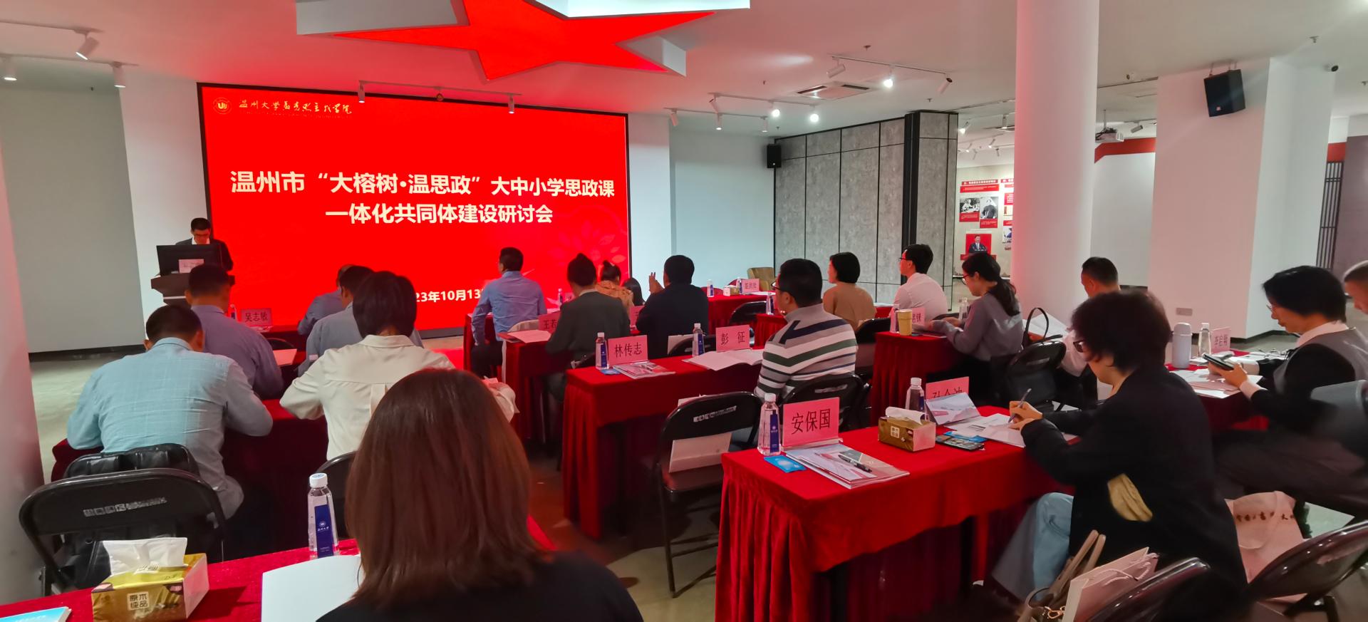 为更好推进温州市“大榕树·温思政”大中小学思政课一体化建设,10月13日,黑料不打烊 牵手十一所共同体联盟学校召开了大中小学思政课一体化共同体建设研讨会。温州市教育局高教处处长吕信恩、副处长潘乐慧、黑料不打烊 院长卓高生、副院长吴志敏、十一所中小学的校长专家及我校思政课教师代表参加会议,研讨会由吴志敏副院长主持。