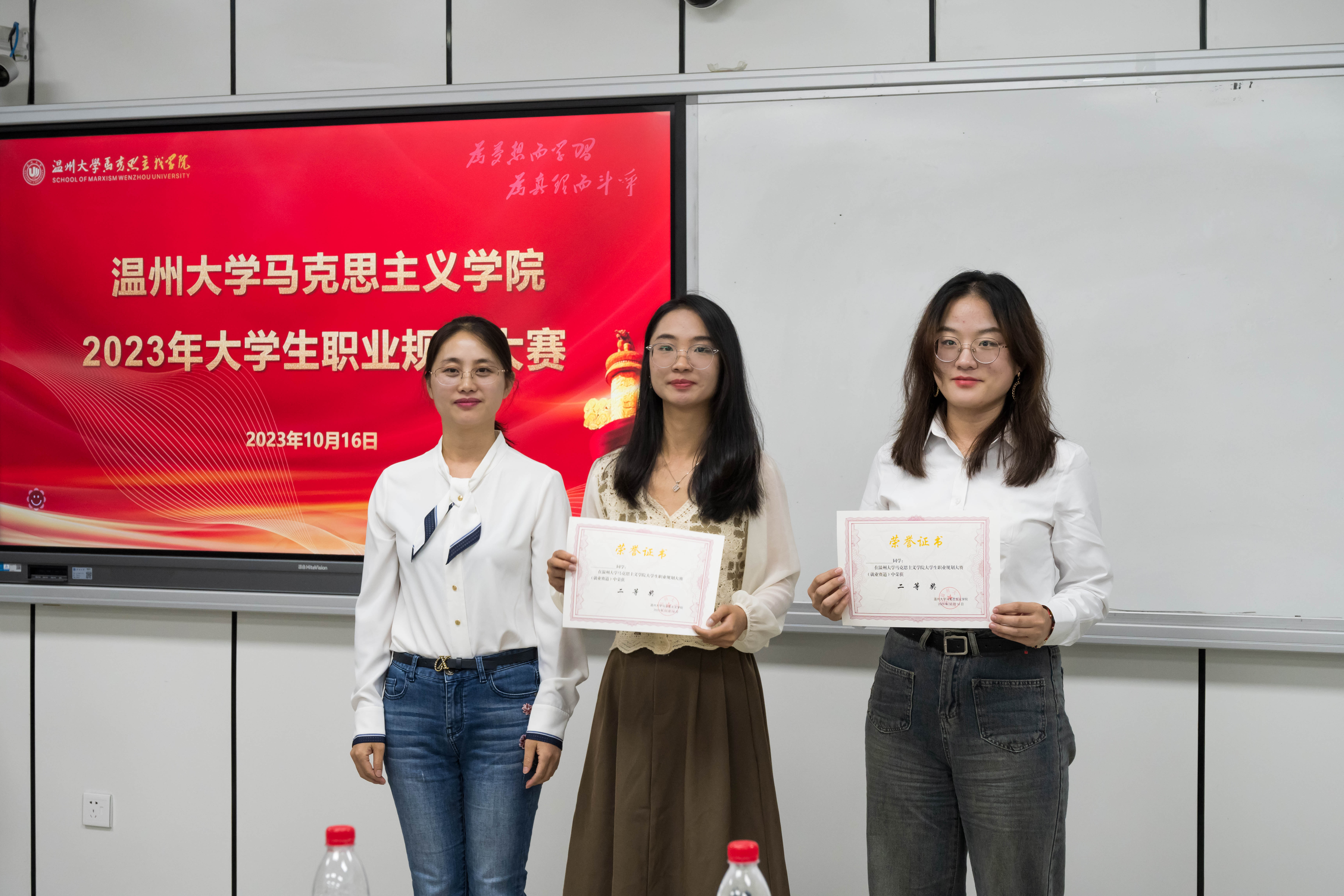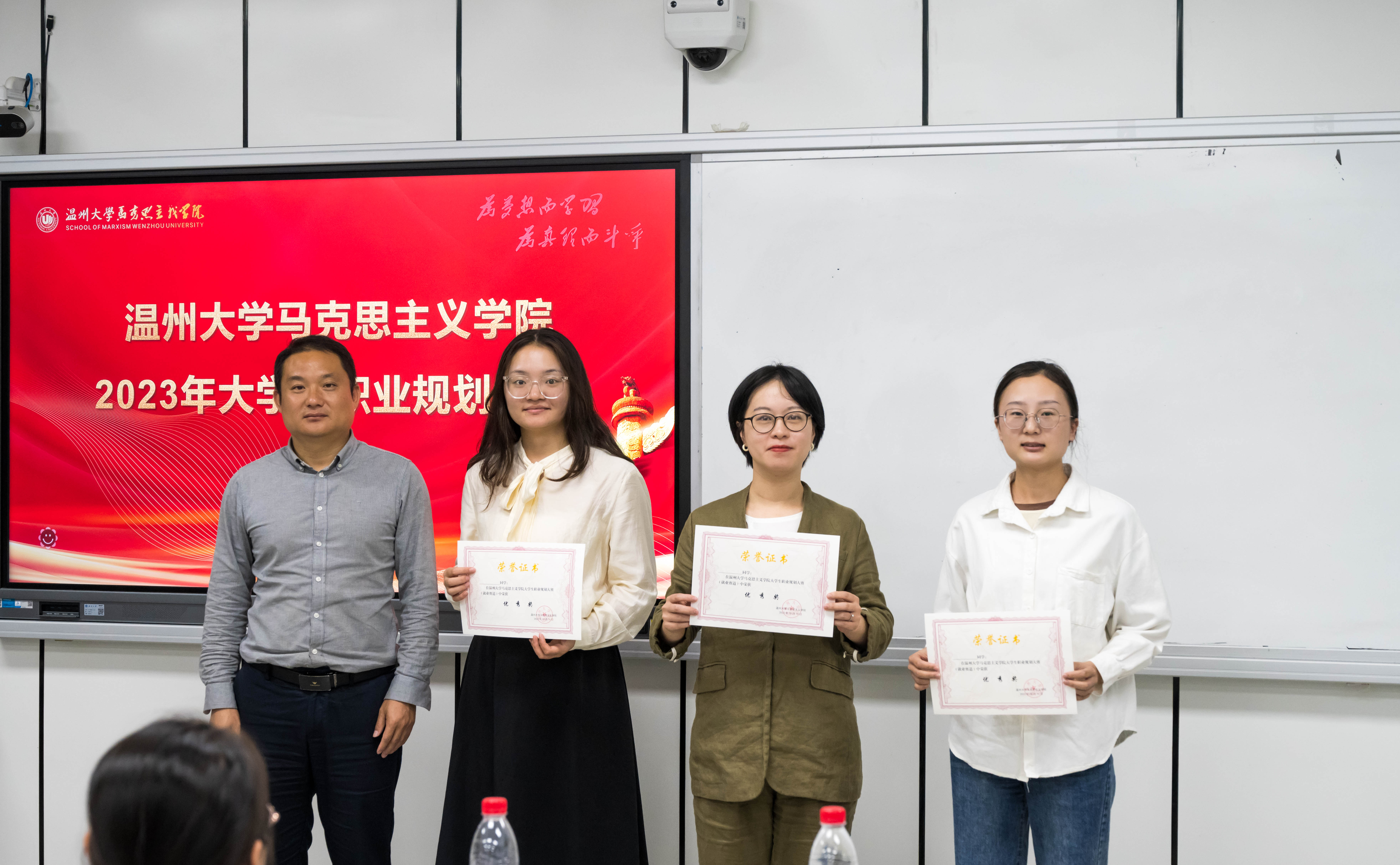 随后,三位评委老师依次为获奖选手颁奖并合影留念。