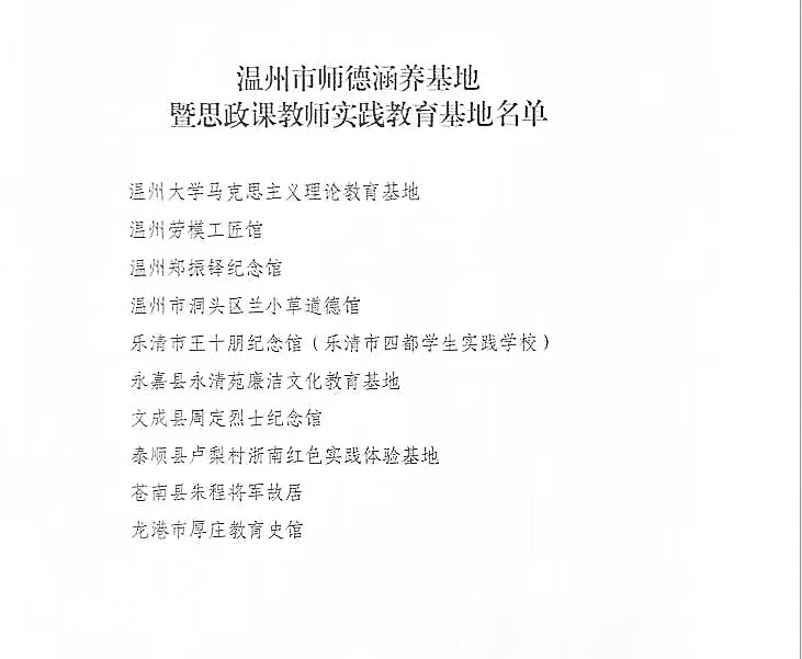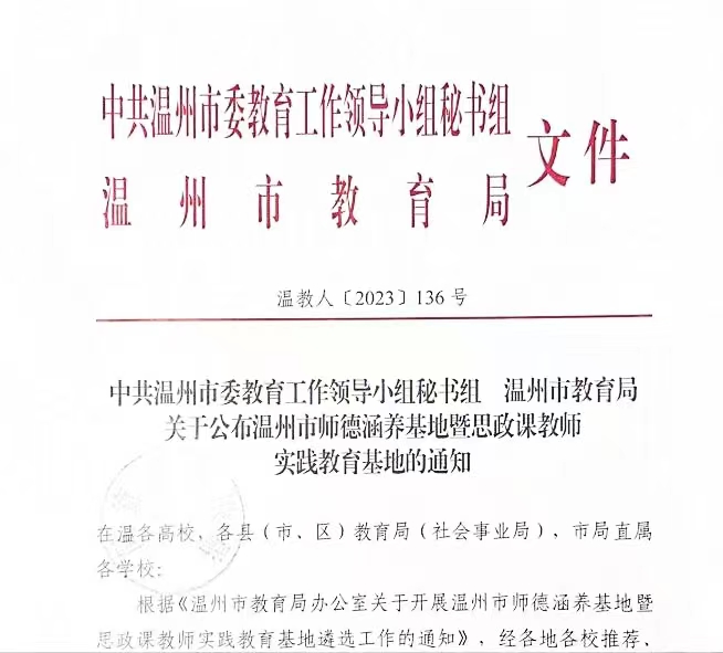 黑料不打烊 马克思主义理论教育基地入选温州市师德涵养基地暨思政课教师实践教育基地