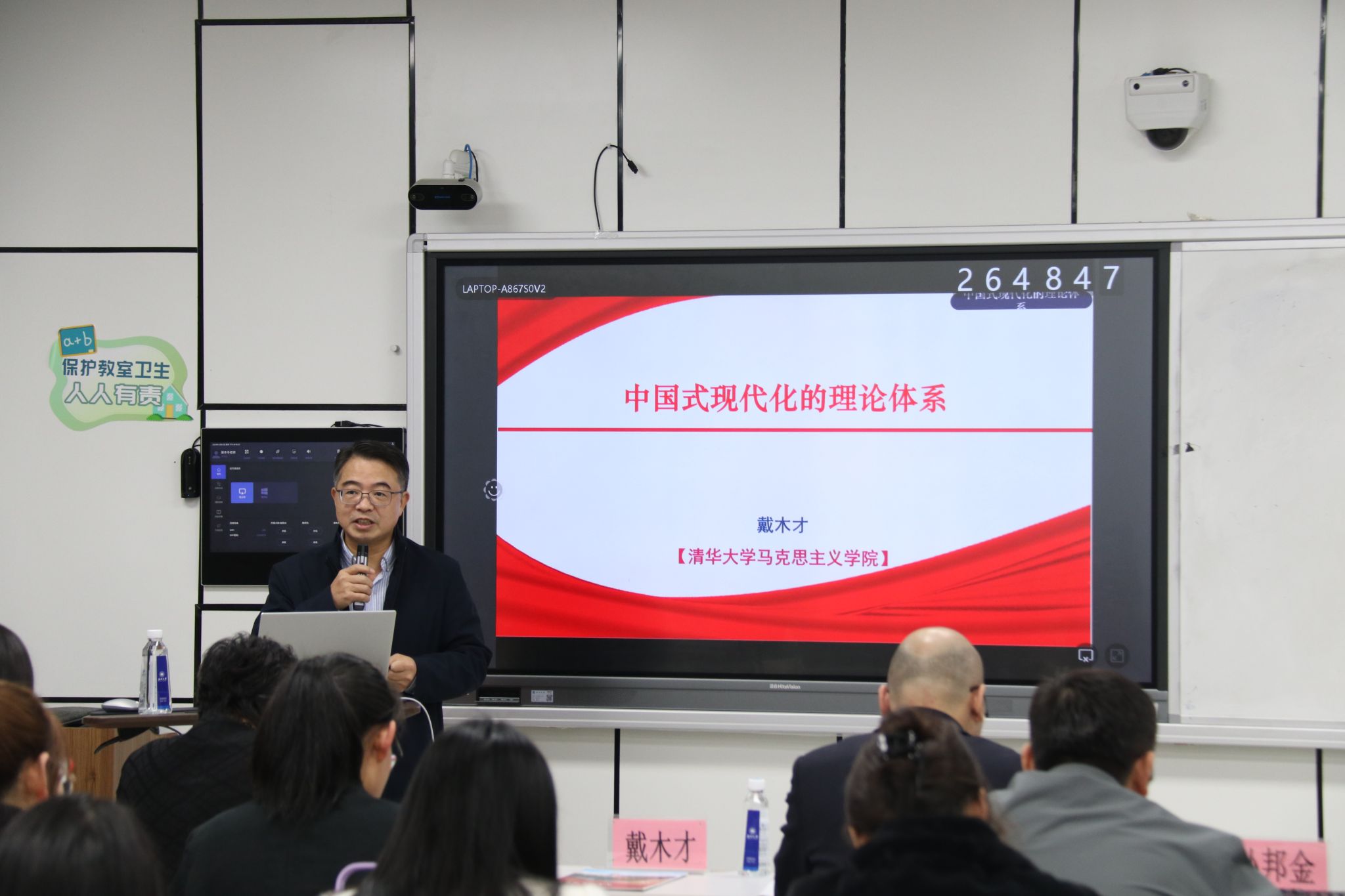 戴木才教授在《中国式现代化的理论体系》的主题讲演中,从四个方面对中国式现代化体系做详细深入地阐释。首先,戴教授从世界现代化运动是从什么时候开始的、世界现代化运动的标志性事件、现代化普遍规律、世界现代化运动的一般涵义四个方面阐释了中国式现代化的一般理论形态。接着,戴教授从六个方面简要阐述了中国式现代化的特殊理论形态。之后,戴教授介绍了中国式现代化的历史发展形态,从中国式现代化的前世、奠基、探索、开创、未来说明了中国式现代化道路的历史发展轨迹。最后,戴木才教授阐述了中国式现代化为什么要把高质量发展作为全面建设社会主义现代化国家的首要任务、为什么要把教育、科技、人才作为全面建设社会主义现代化国家的基础性、战略性支撑等问题,强调了决定现代化成败最关键的是科技创新。